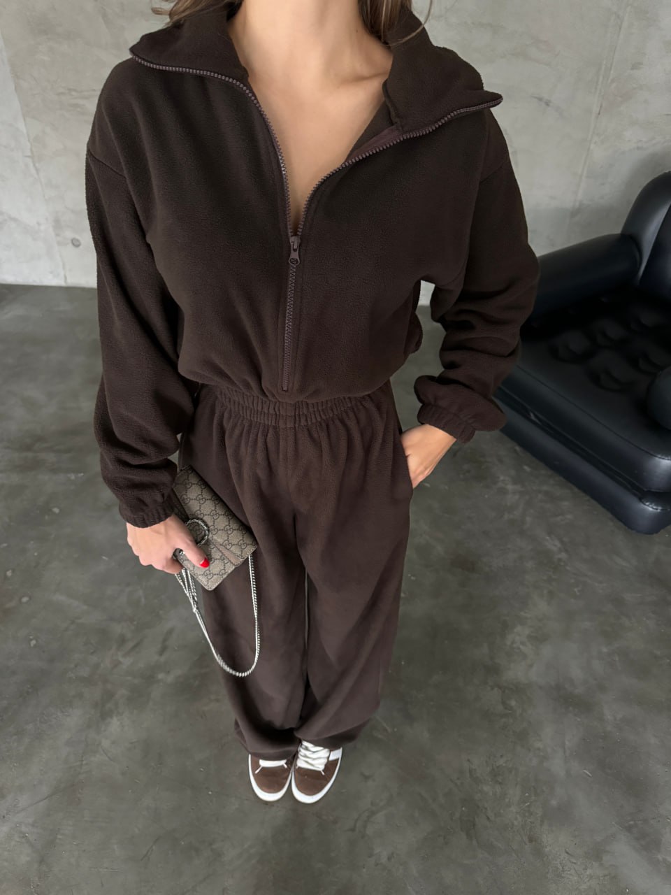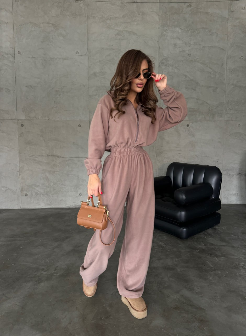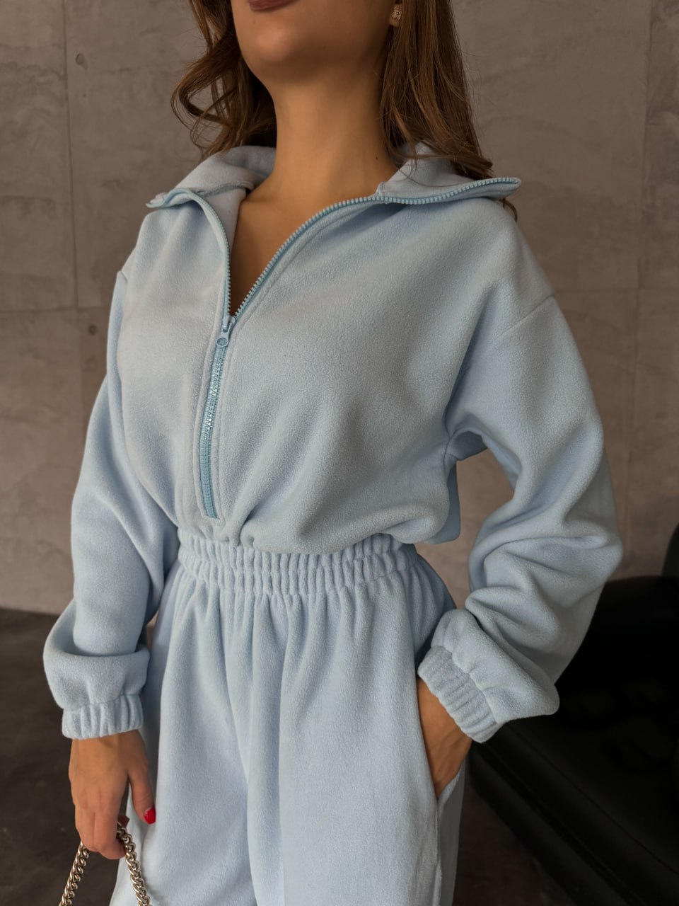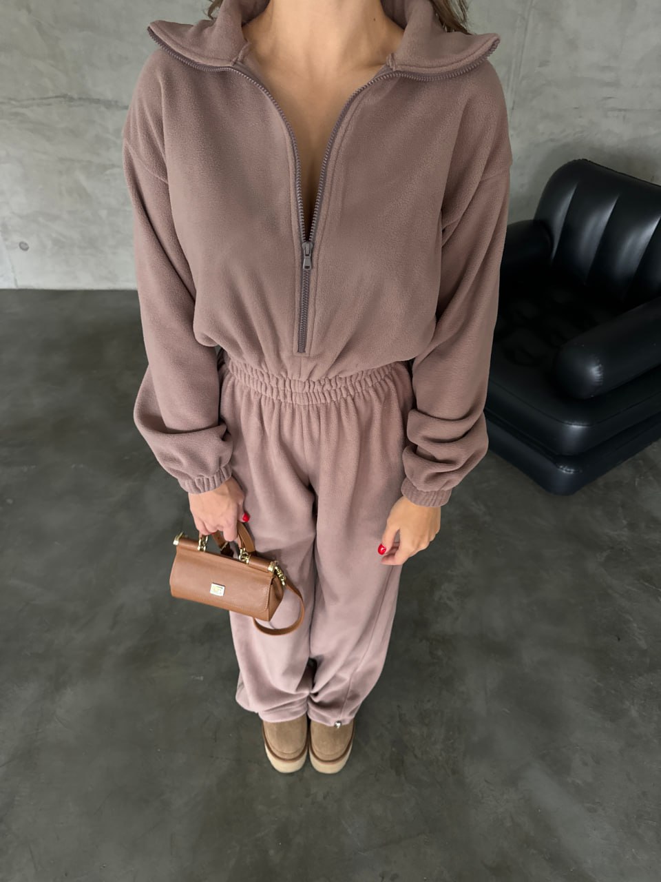 Опис: Стильний та універсальний комбінезон з м’якого і теплого флісу- просто створений для максимального комфорту . Модель застібається на блискавку, у поясі резинка, брюки прямого крою з гумкою замість манжетів.( можна затягувати )
