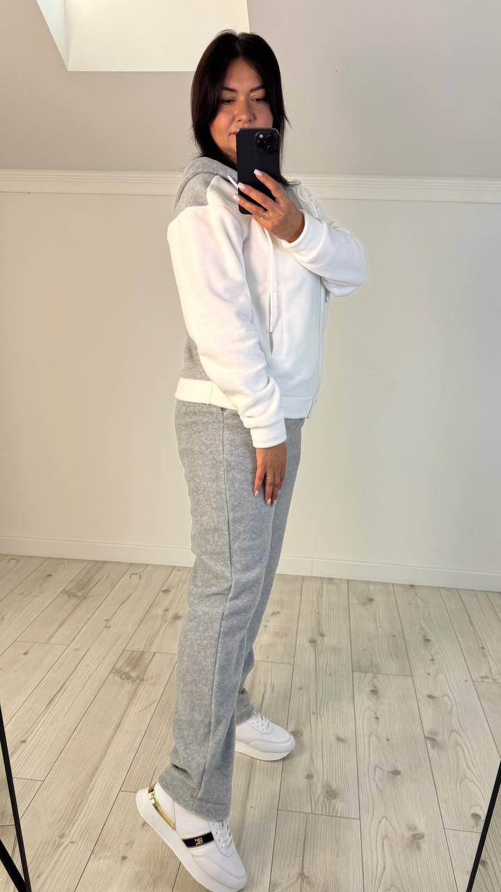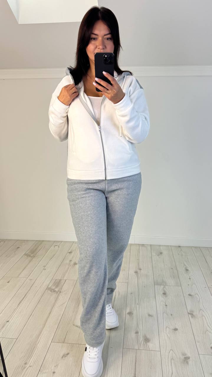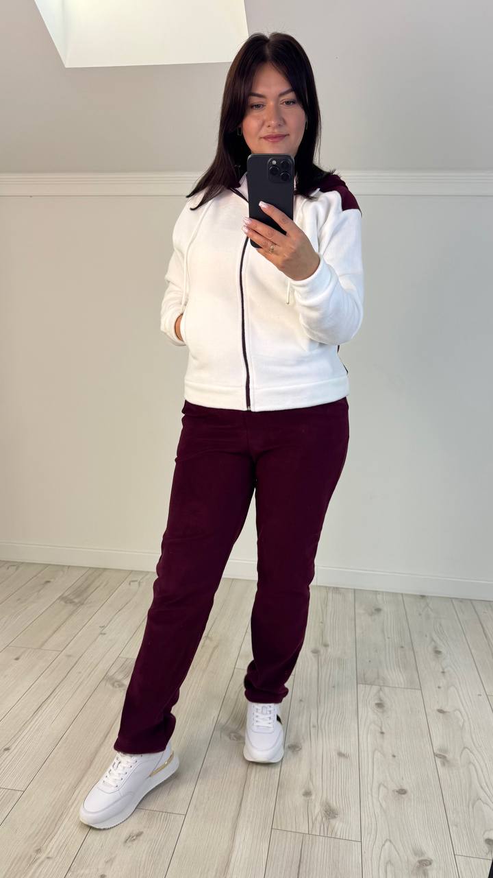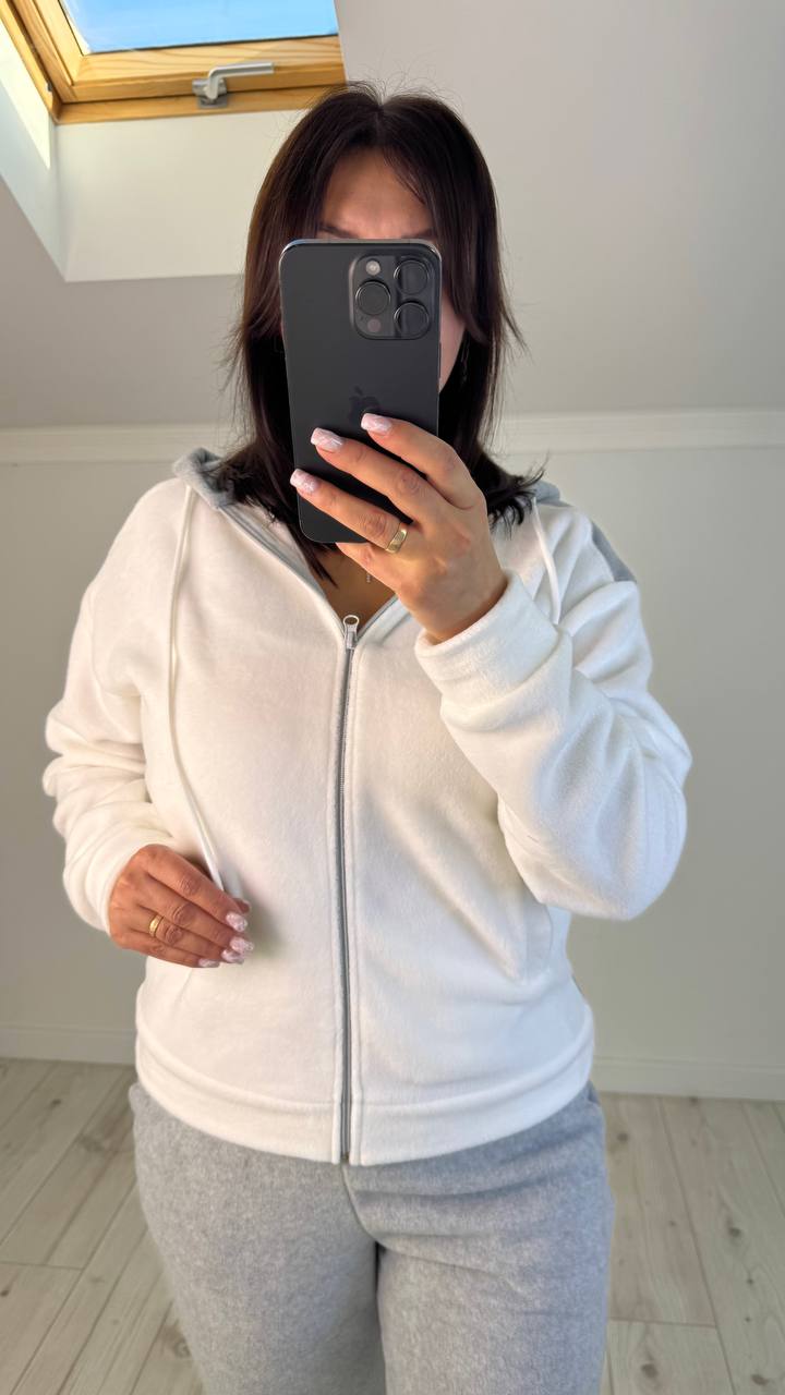 Костюм спортивний штани та кофта. Кофта із капюшоном,на блискавці, рукава на манжетах, з двома карманами. Штани прямого крою до низу, посадка висока, талія на резинці, із кишенями. Дуже теплий, тканина мʼягенька та щільна
