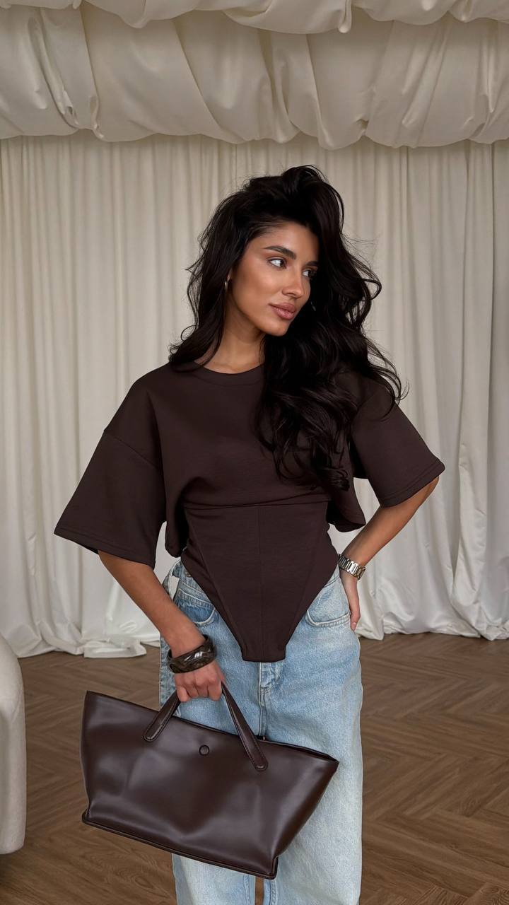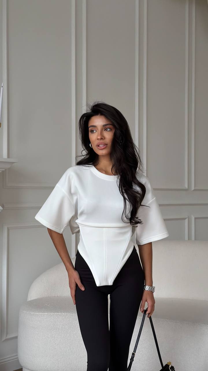 Футболка з імітацією корсету, можно регулювати затяжками по фігурі . З плічиками .