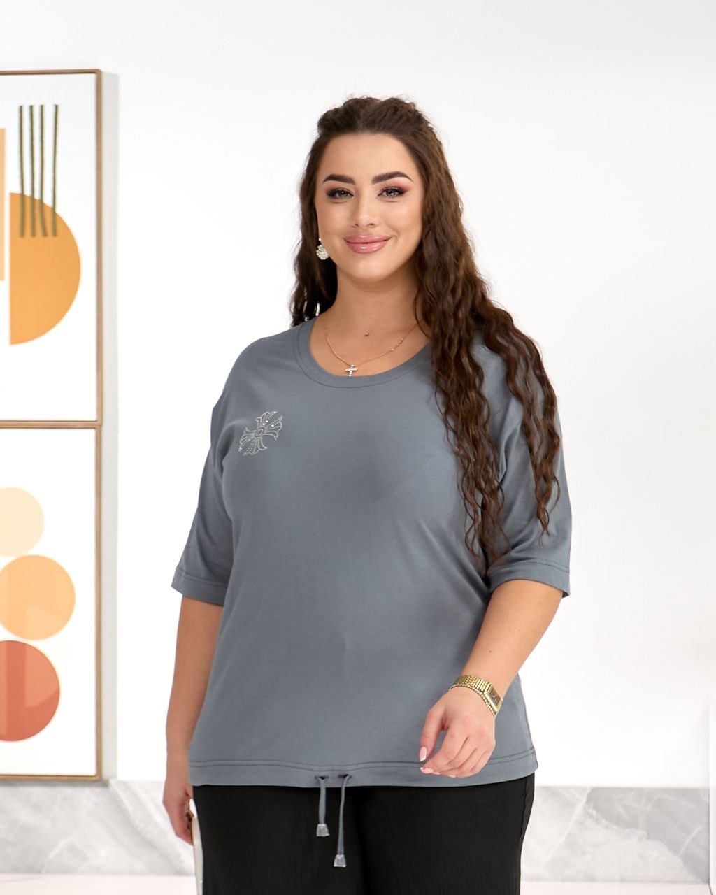 Стильна футболка вільного крою з куліскою