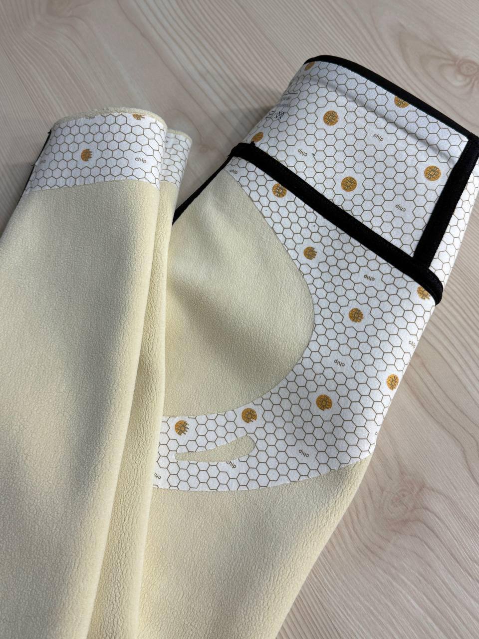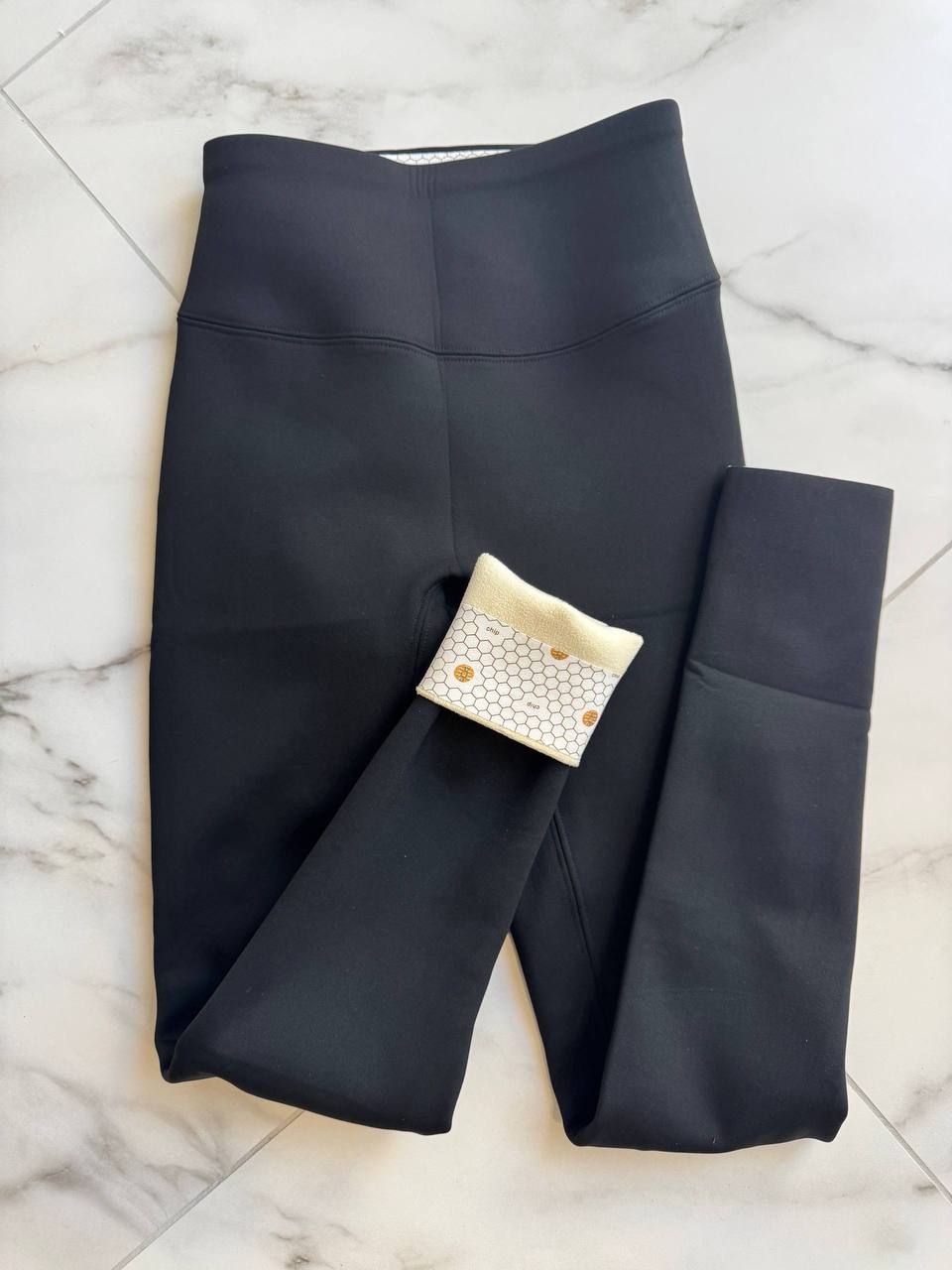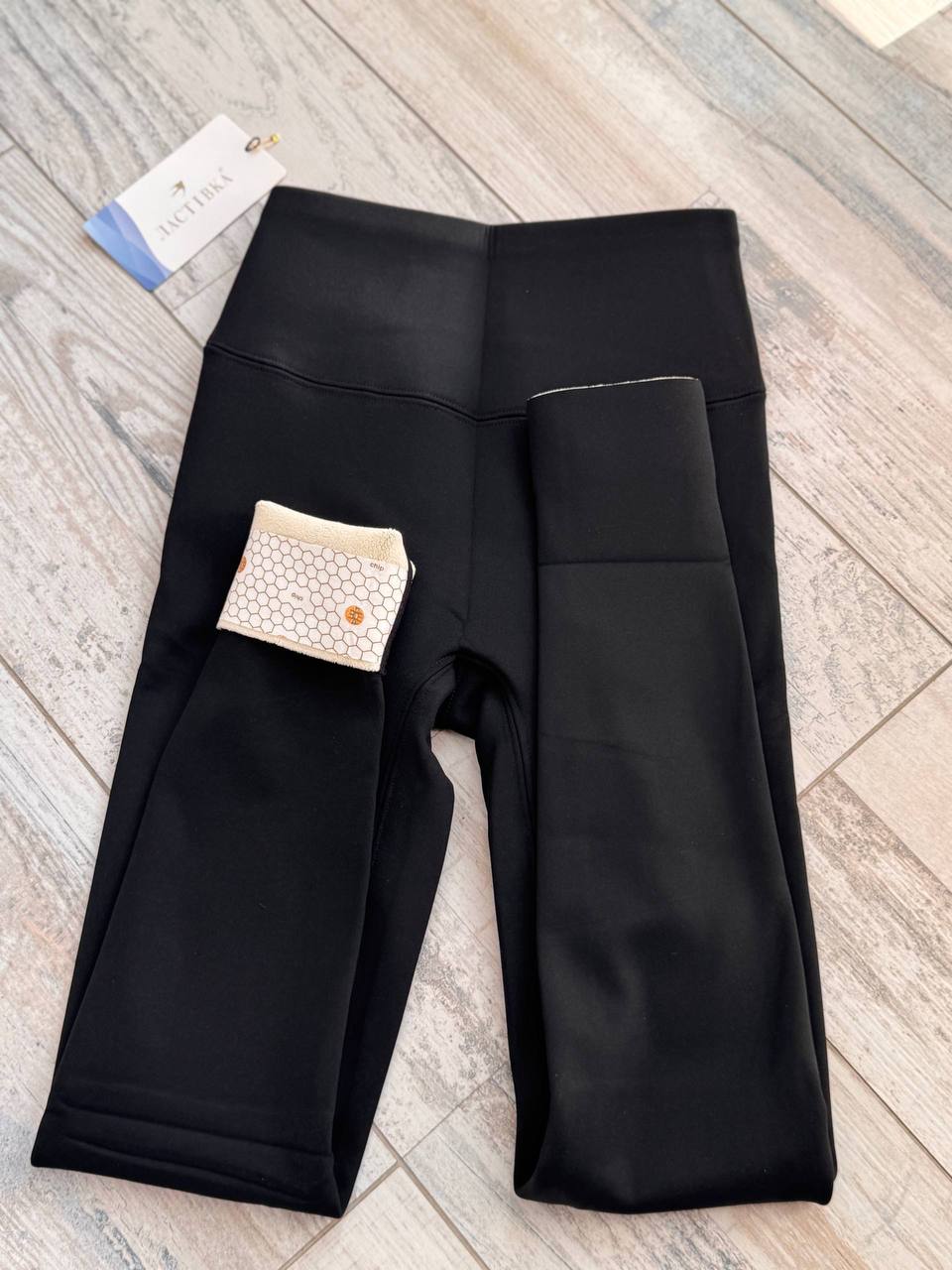 Внутрішній шар із м’яким густим начосом приємний до тіла. Особливістю моделі є коригуючі мембрани та ефект пуш-ап — вони підкреслюють талію та округлюють сідниці, візуально витягаючи силует.