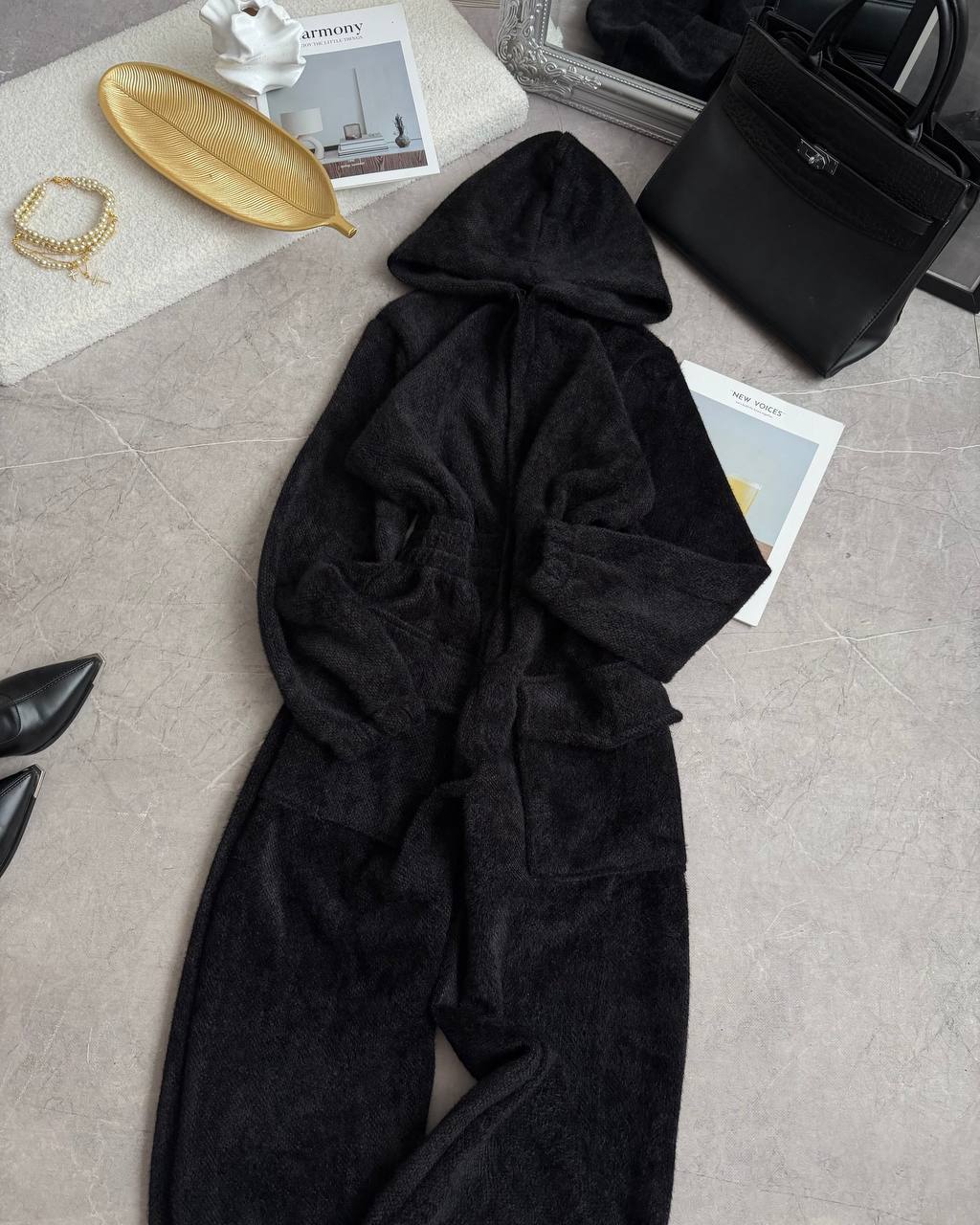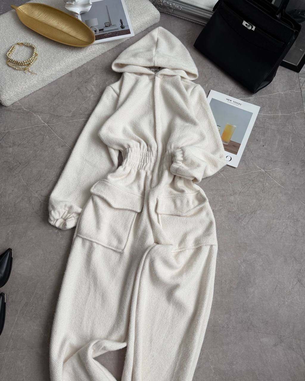 Зручний теплий оверсайз комбез з капюшоном, на змійці. Мʼяка приємна тканина до тіла.