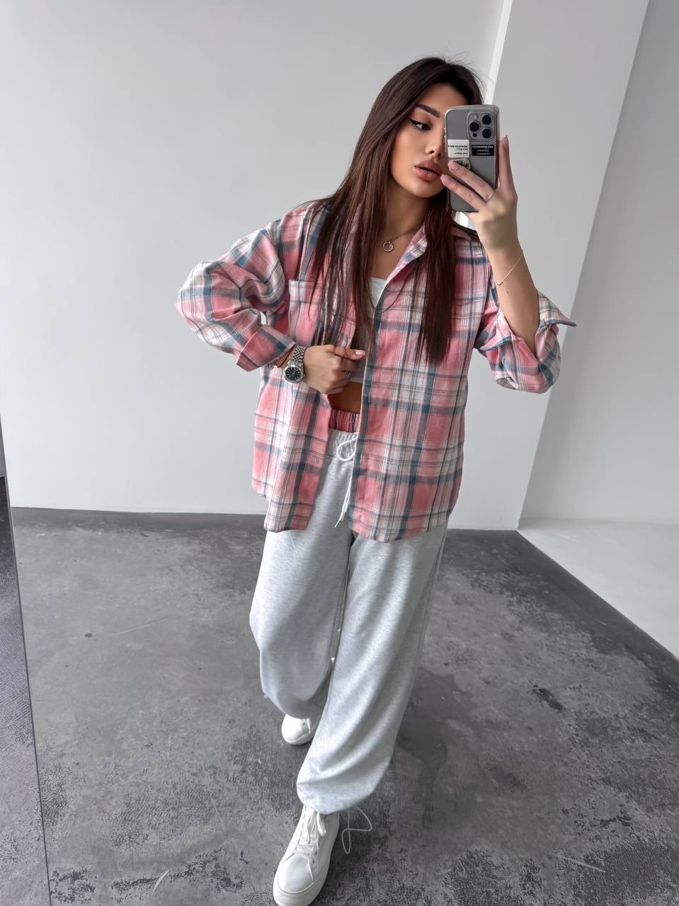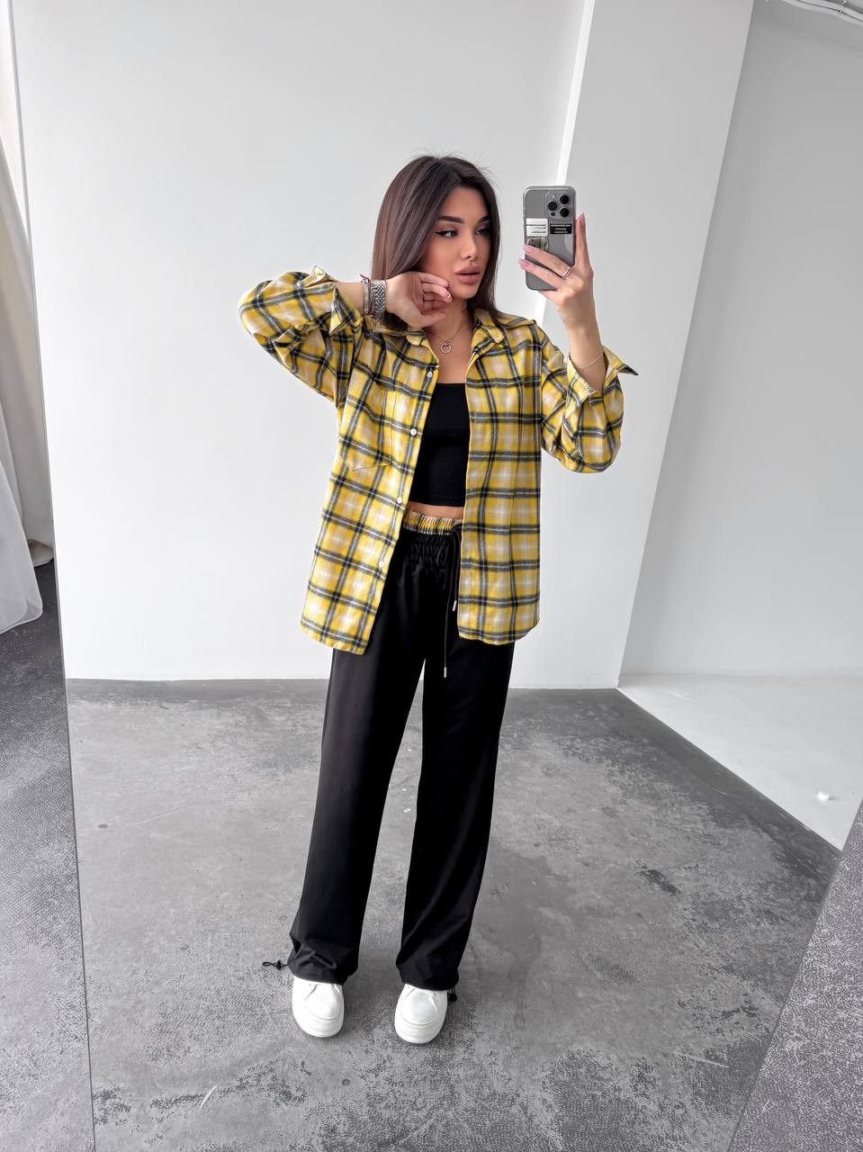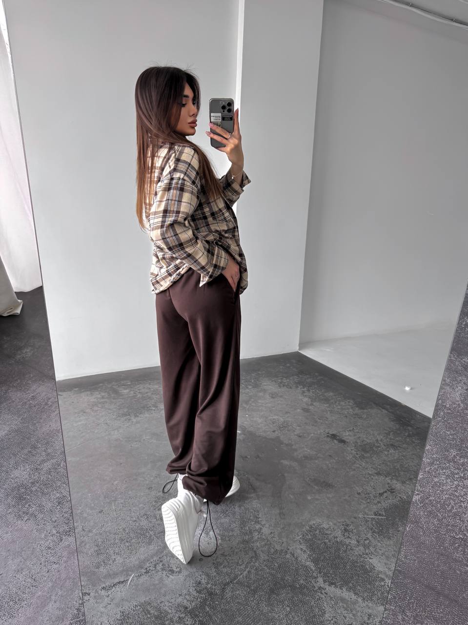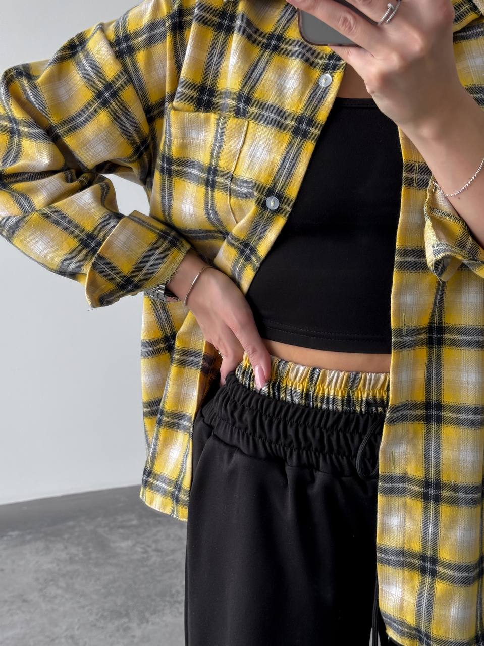 Жіночий костюм двійка у стильному та зручному виконанні: сорочка з м’якої фланелі, приємної до тіла. Брюки з двонитки — практичні та комфортні, з регульованим низом на фіксаторах для зручної посадки. Модель доповнена подвійним поясом, який підкреслює талію та додає образу завершеності.