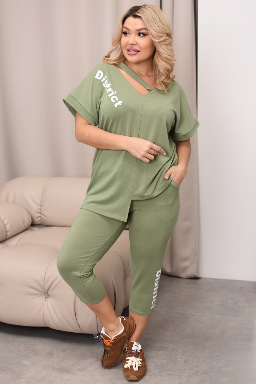 Костюм двійка бриджі та асиметрична футболка з написом, напис може змінюватися