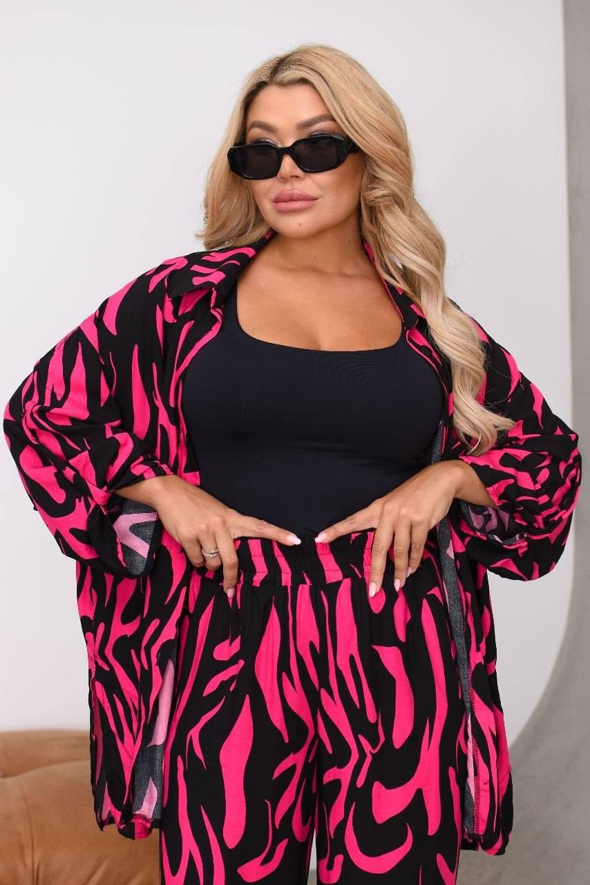 54-56 Ог 120, довжина 85, рукав 41, талія тягнеться до 120, об 130, довжина штанів 111