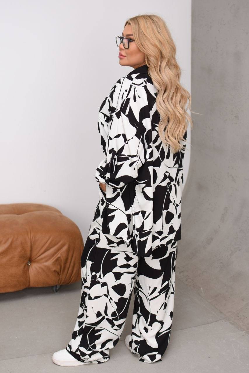 50-52 Ог 110, довжина 84, рукав 40, талія тягнеться до 110, об 120, довжина штанів 110