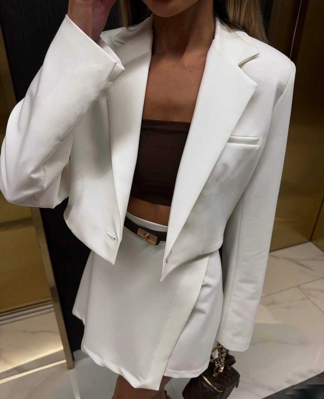 Костюм двійка, спідниця шорти + укорочений піджак ;піджак з плічиками , застібається на гудзик;