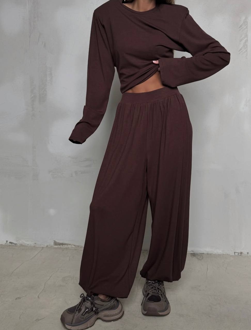 Штани з затяжками знизу . Можно носити як палаццо , або як джогери .