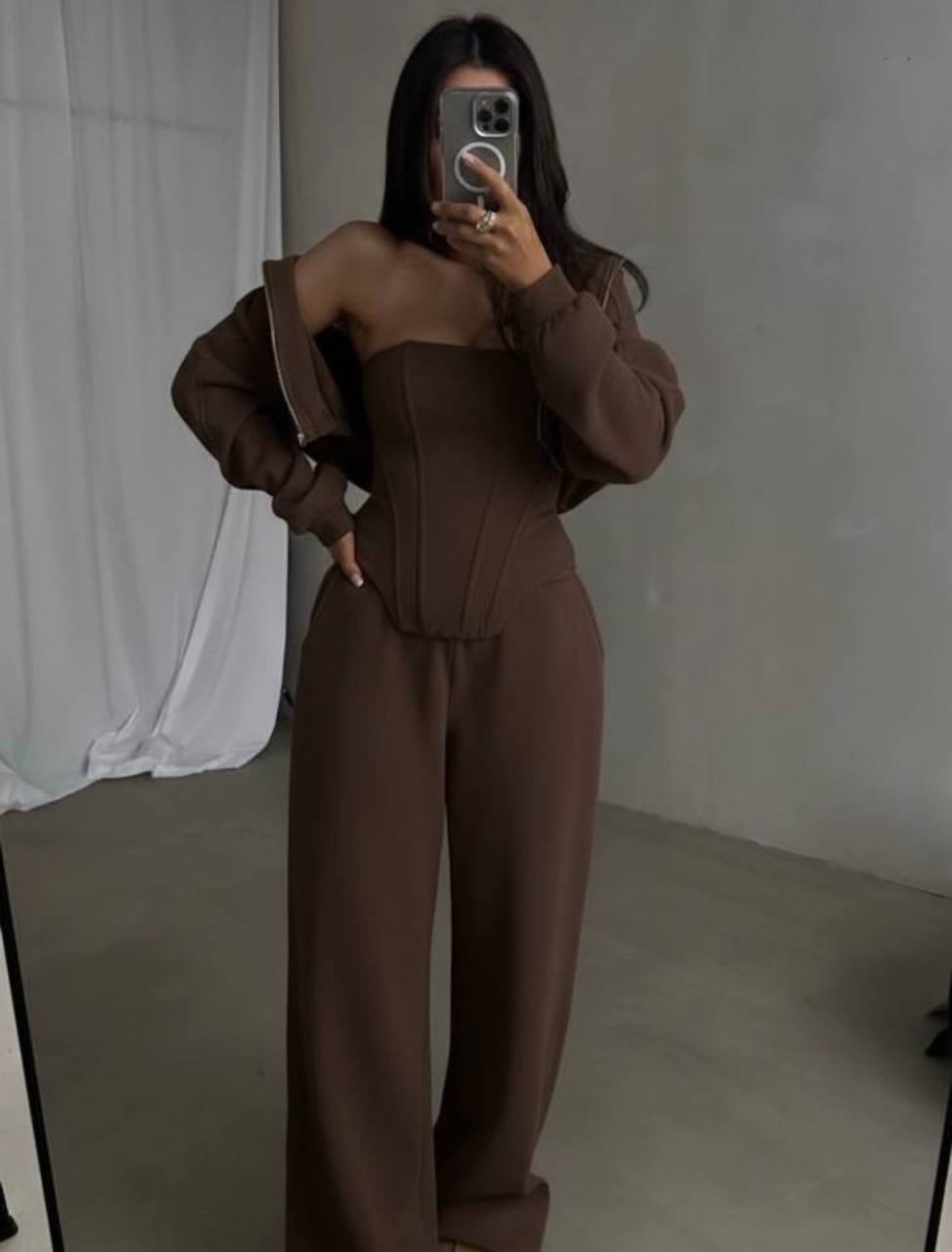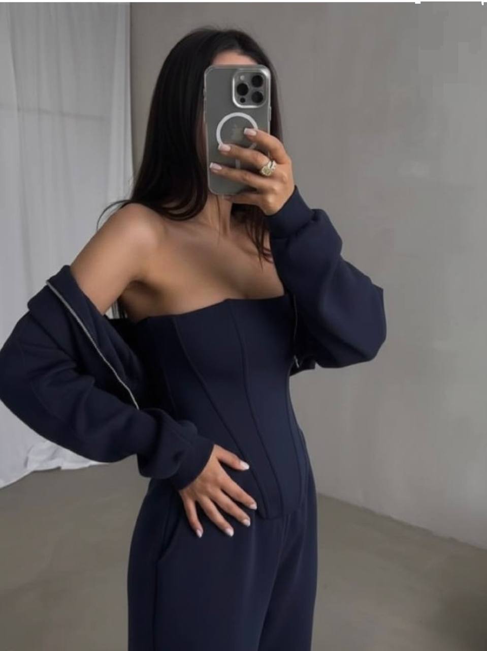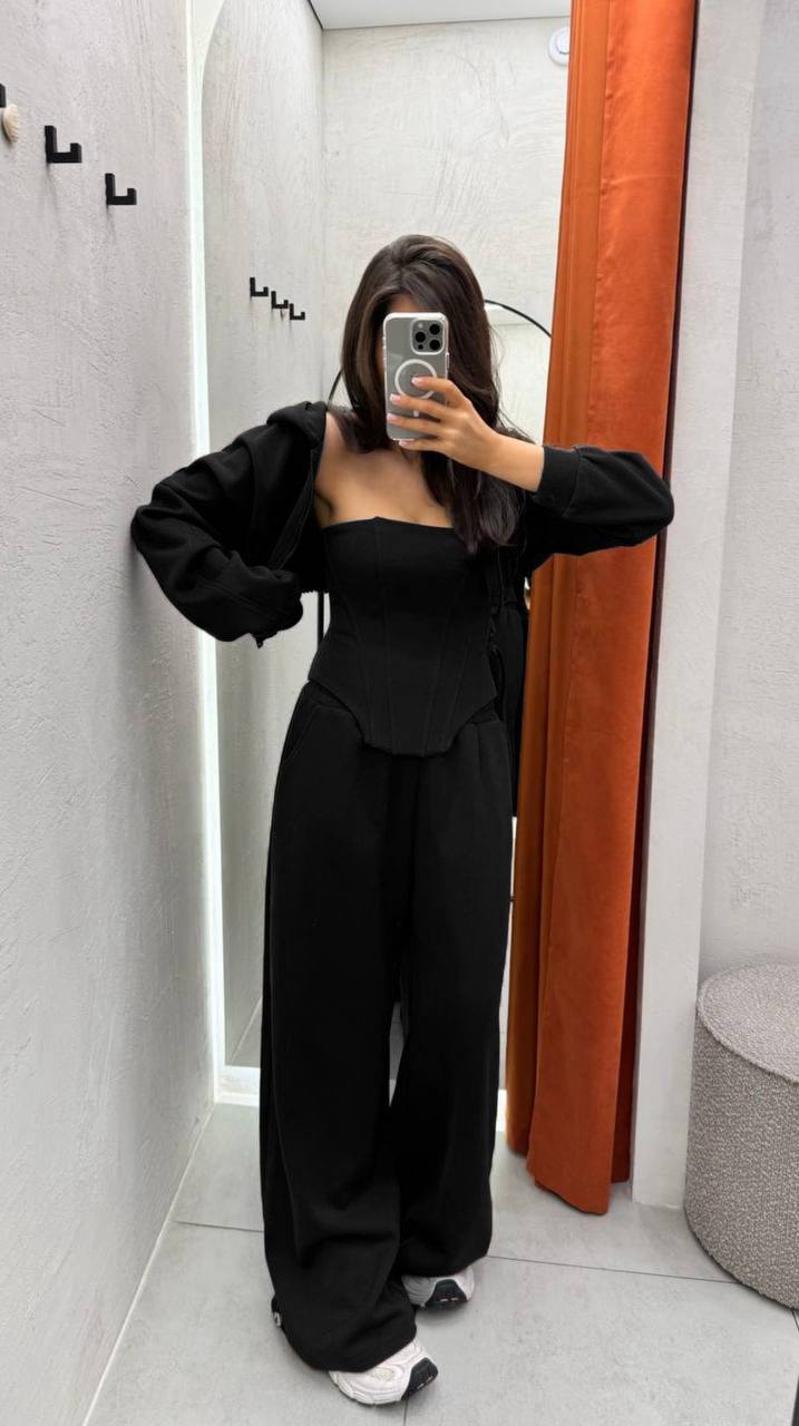 Костюм складається з кофти з капюшоном, корсету та штанів