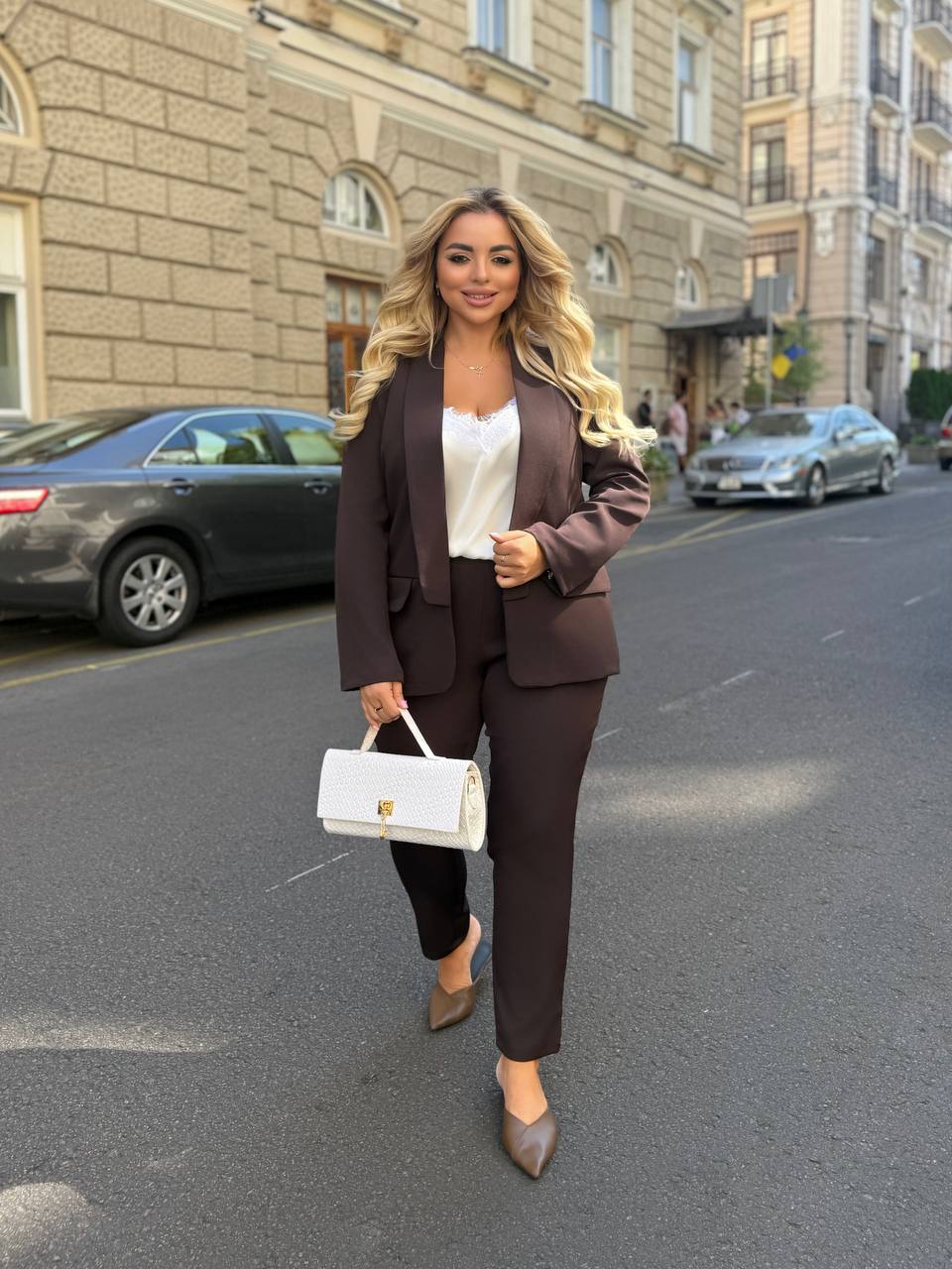 Тканина: піджак та брюки – костюмка, Майка шовк Армані з французьким мереживом.