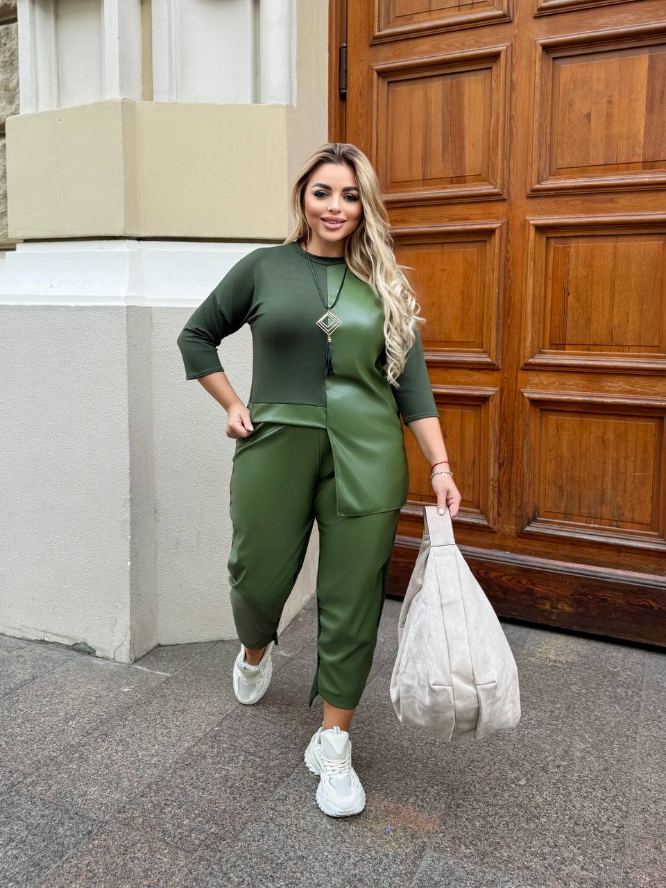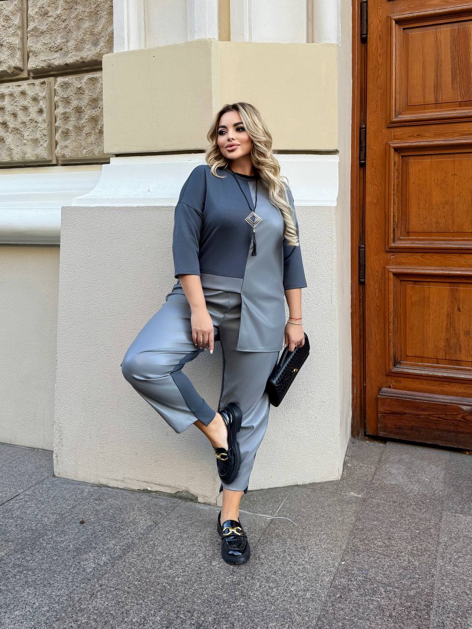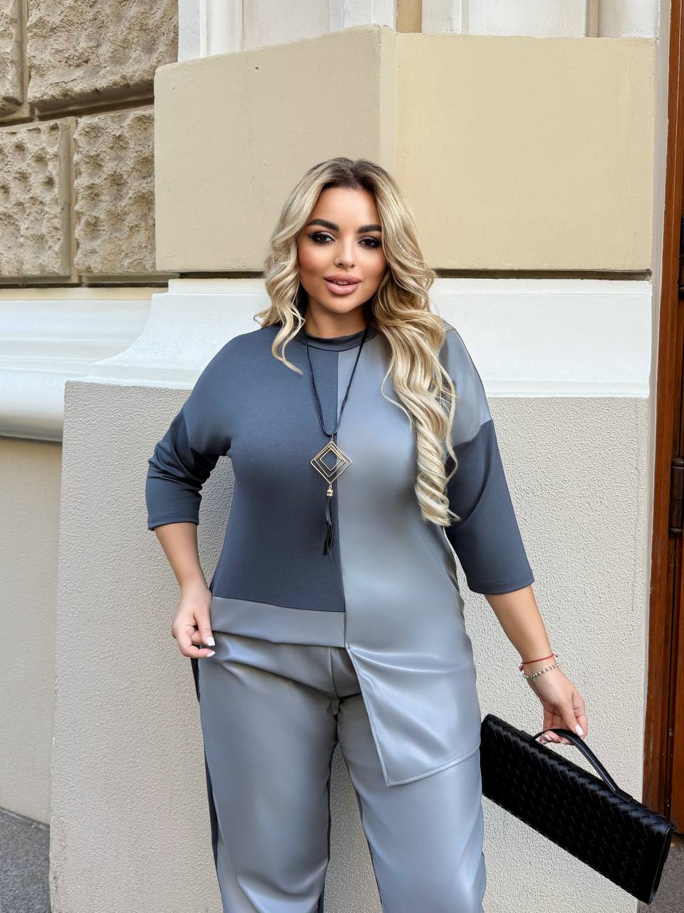 ▫️Стильний костюм-двійка виконаний з якісної двонитки та екошкіри, яка не буде образити після прання
