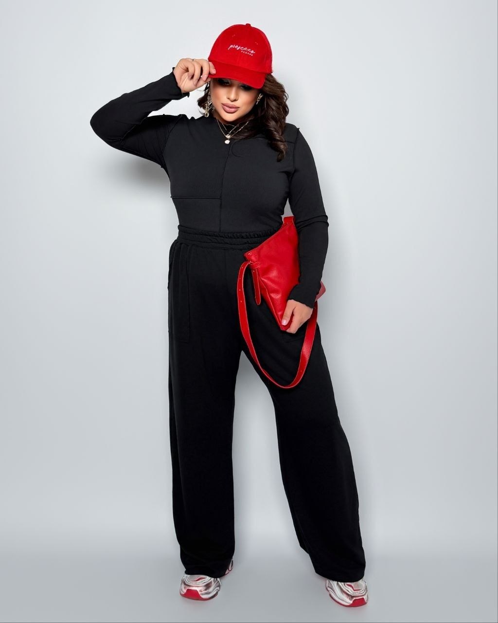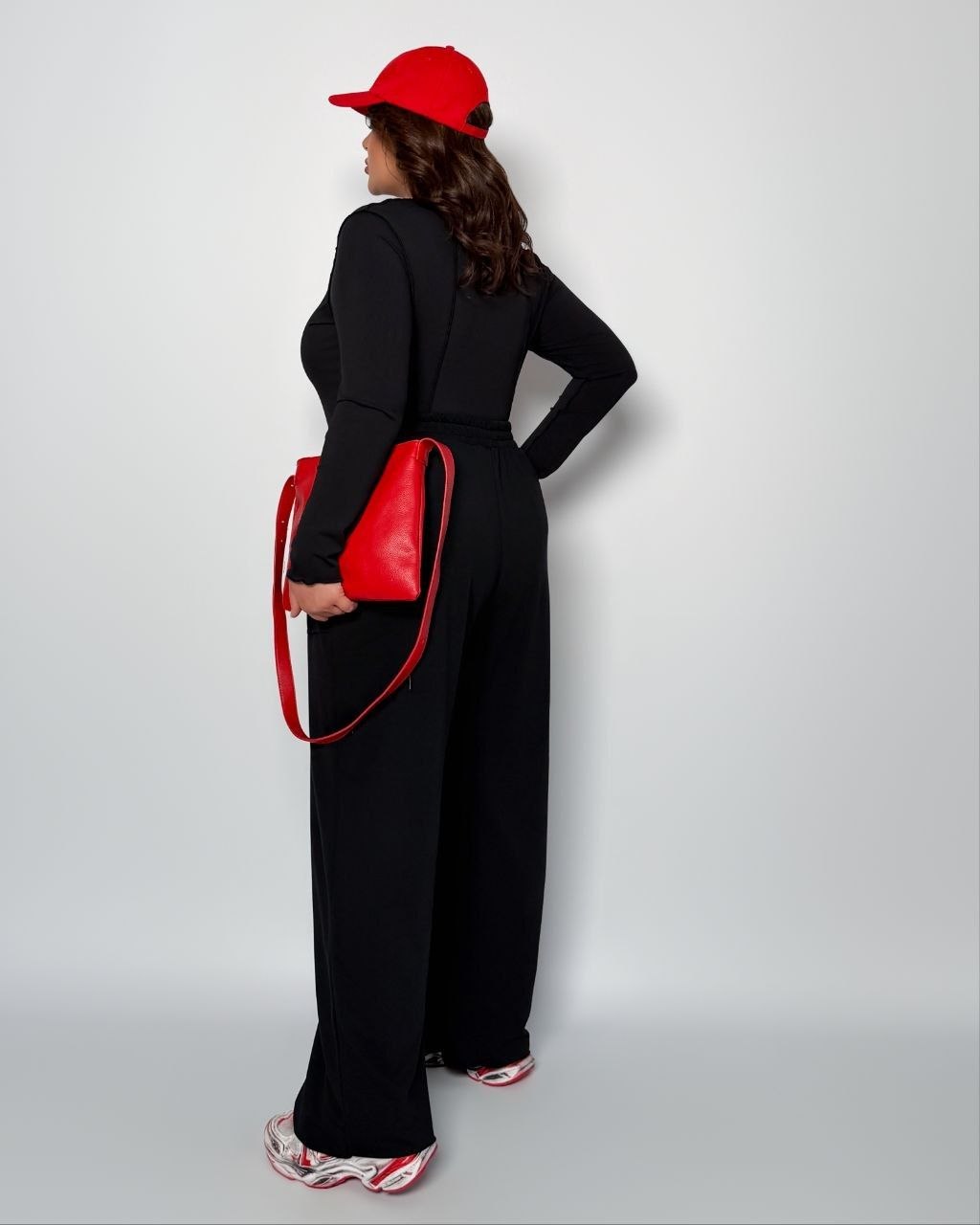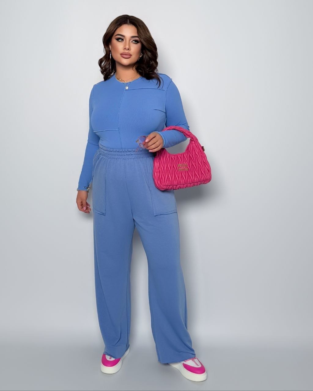54-56 Об’єм грудей лонга – 110 см, Об’єм талії лонга – 86 см, Довжина рукава лонга – 59 см, Довжина лонга – 57 см, Об’єм талії штанів – 84 см (тягнеться до 130 см) Об’єм стегон – 130 см, Внутрішній кроковий шов – 72 см, Довжина штанів – 110 см