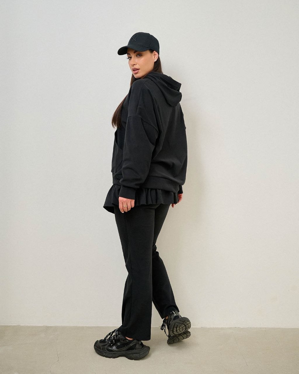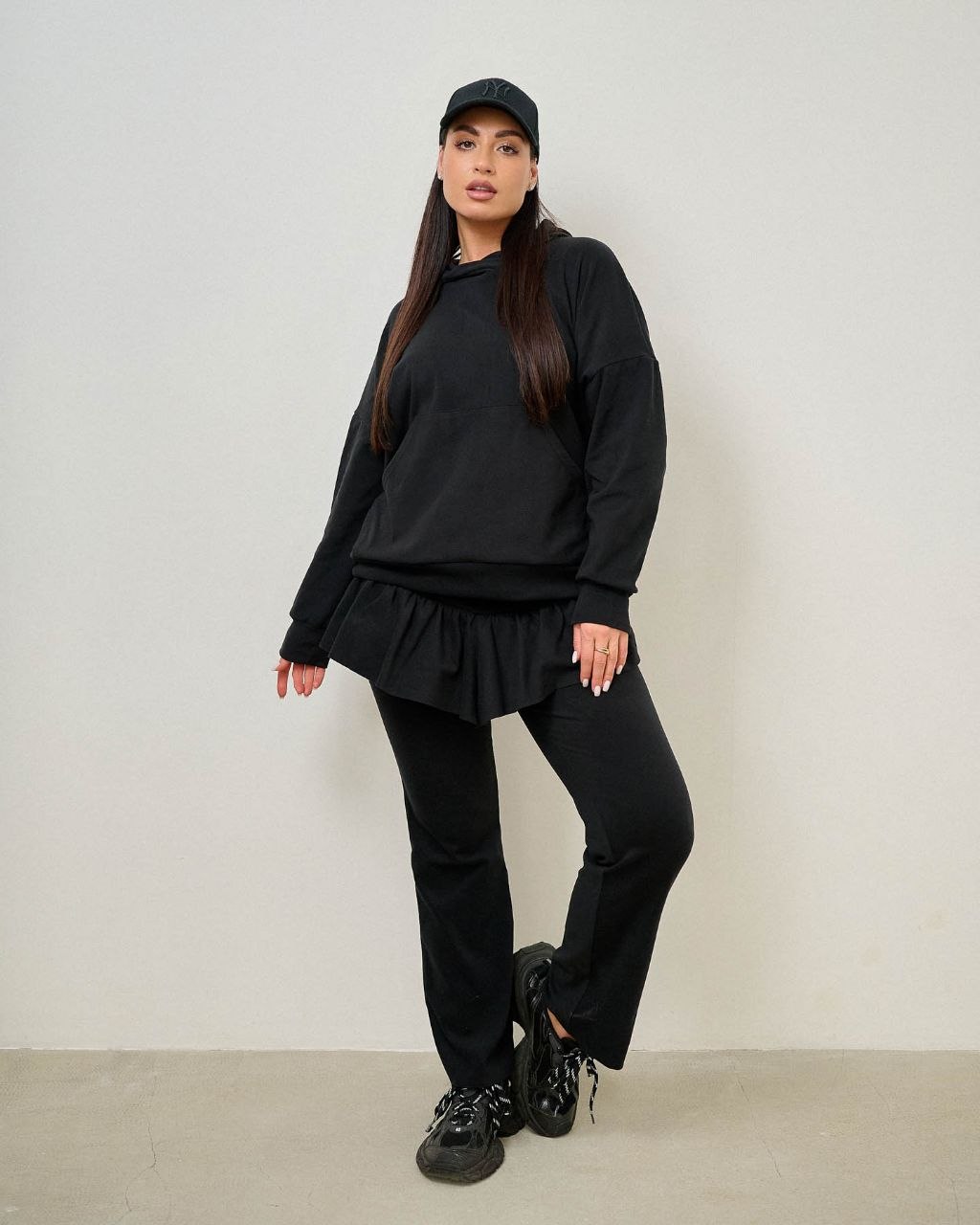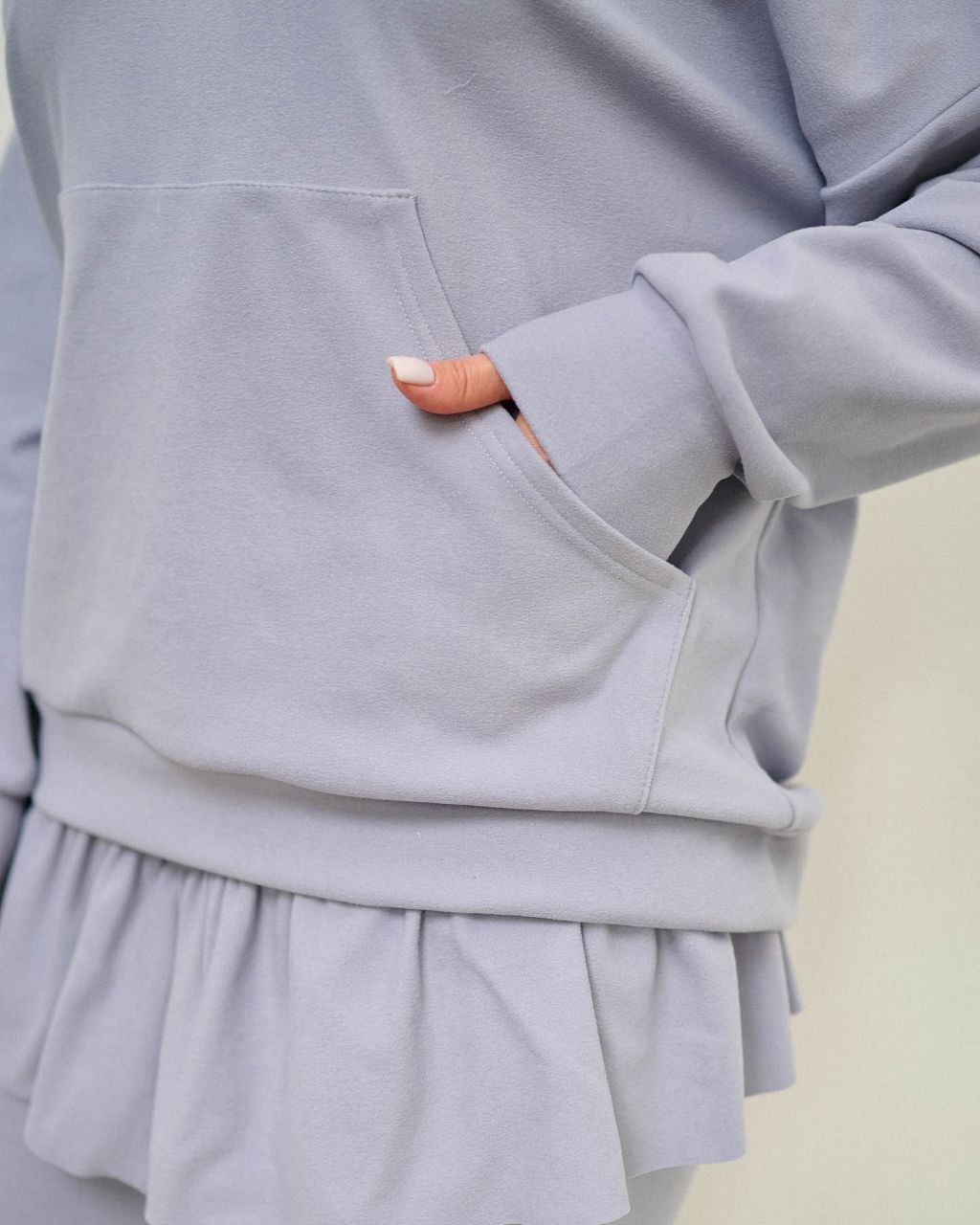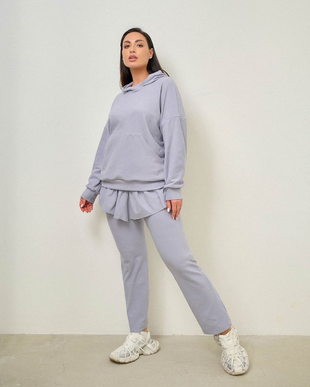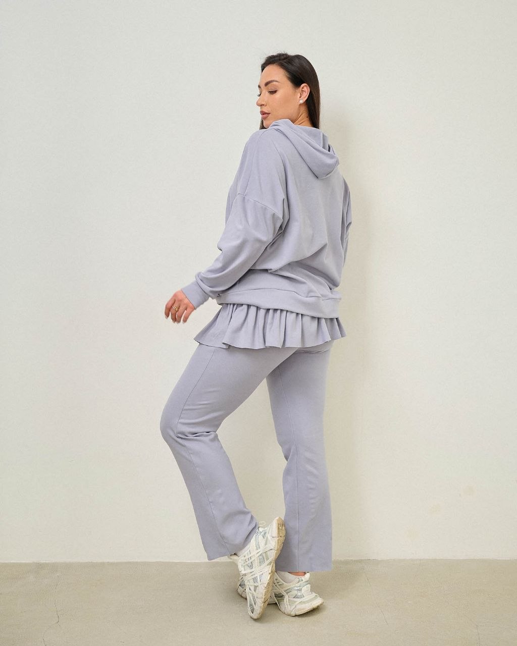 Костюм з оборкою по штанах.