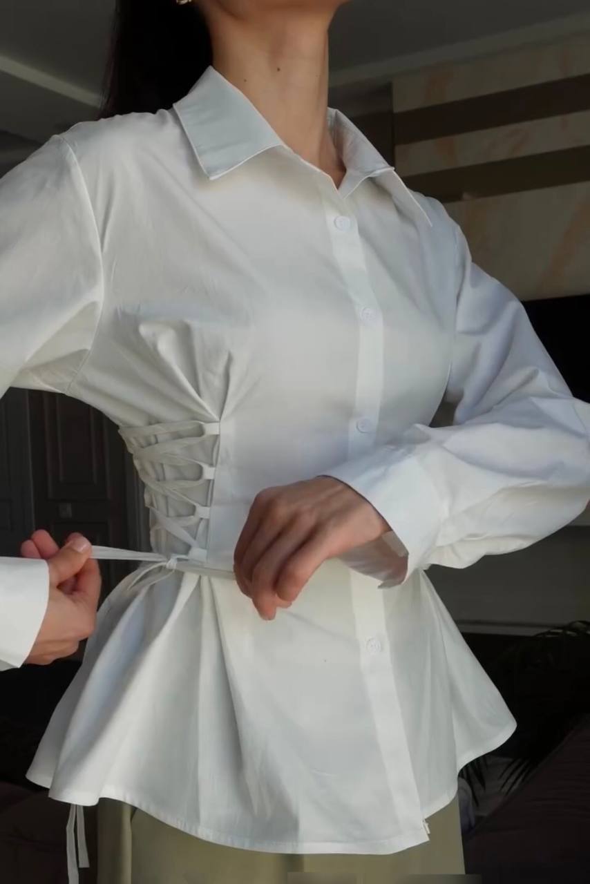 Неймовірно стильна сорочка , корсетна шнурівка виглядає максимально ефектно, створюючи витончений силует «пісочний годинник».