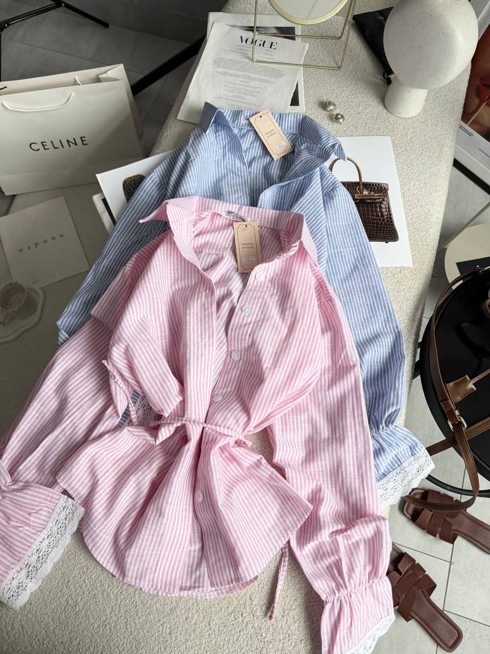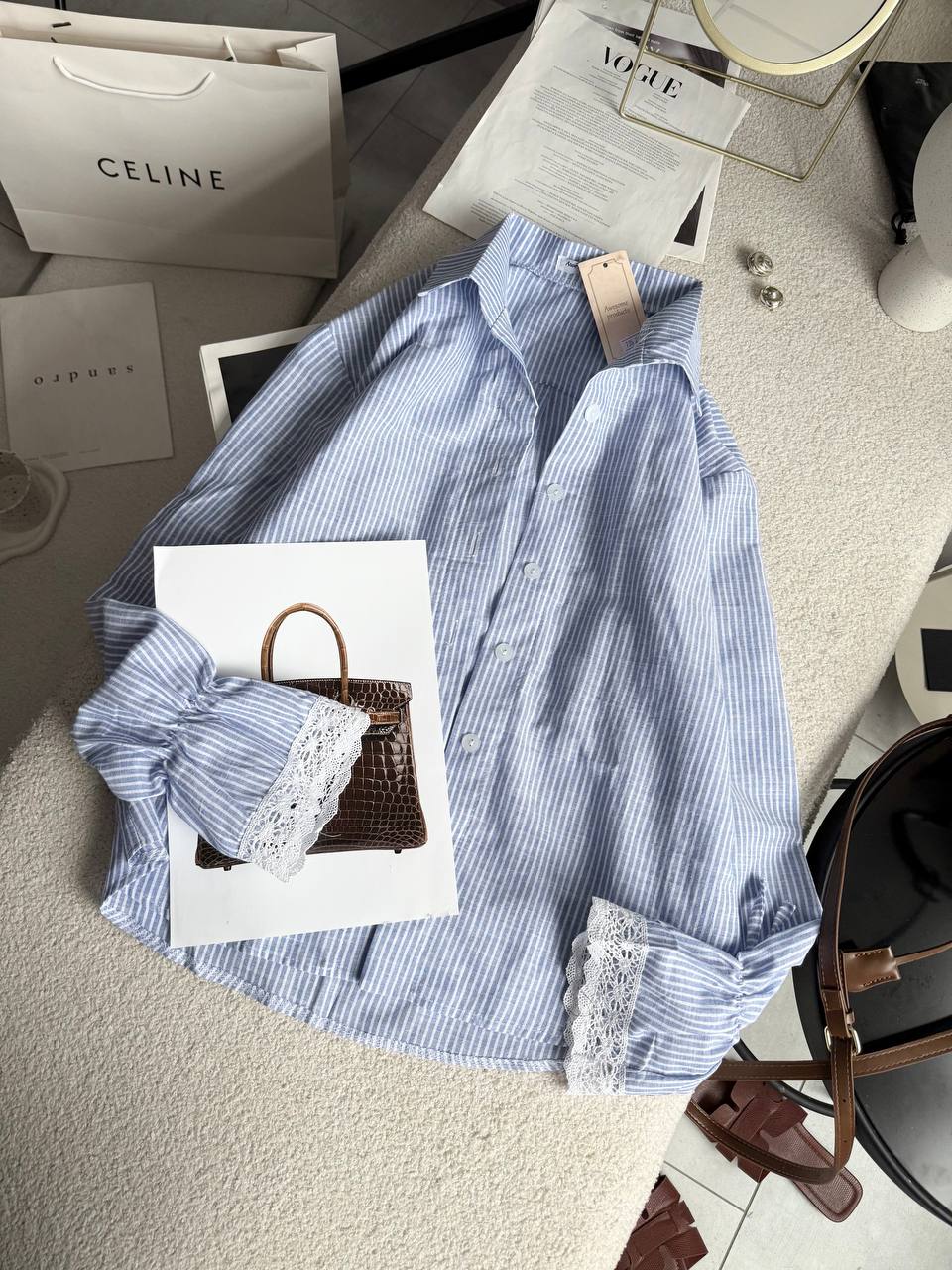 Стильна та яскрава сорочка з легкої тканини та мереживом на рукавах