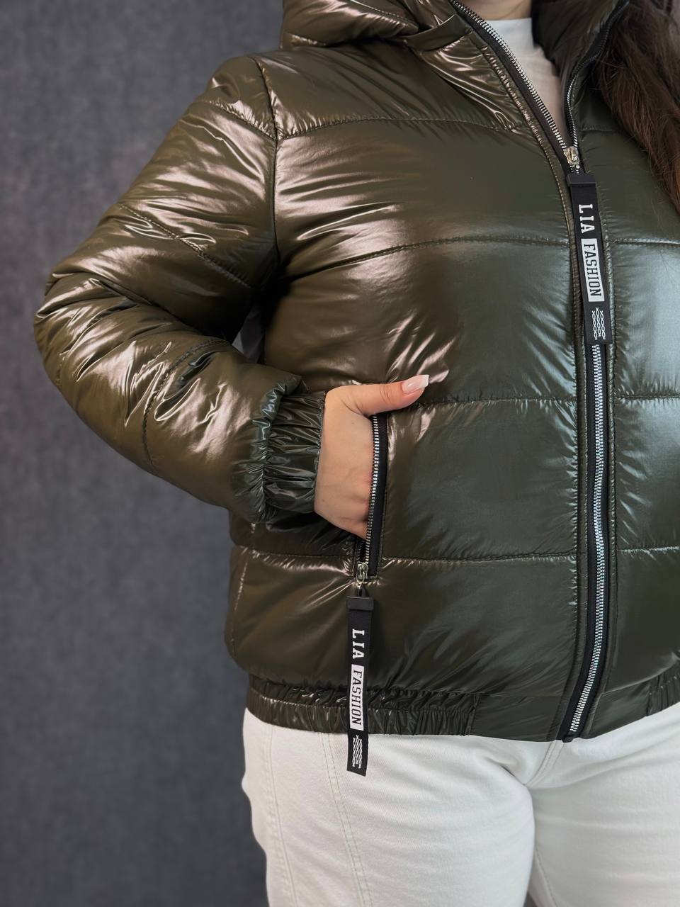 Тепла куртка : довгий рукав на широкій резинці, спереду на молнії , ворот -стійка, глибокий капюшон на молнії , з боків кишені на молніях «Fashion» , по низу куртки широка резинка.