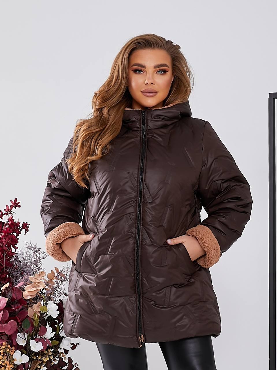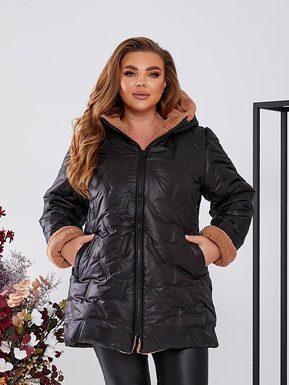 Тканина – плащівка стьобана силікон 200, на підкладці з плащовоі тканини ,штучне хутро(відтінок може змінюватись).