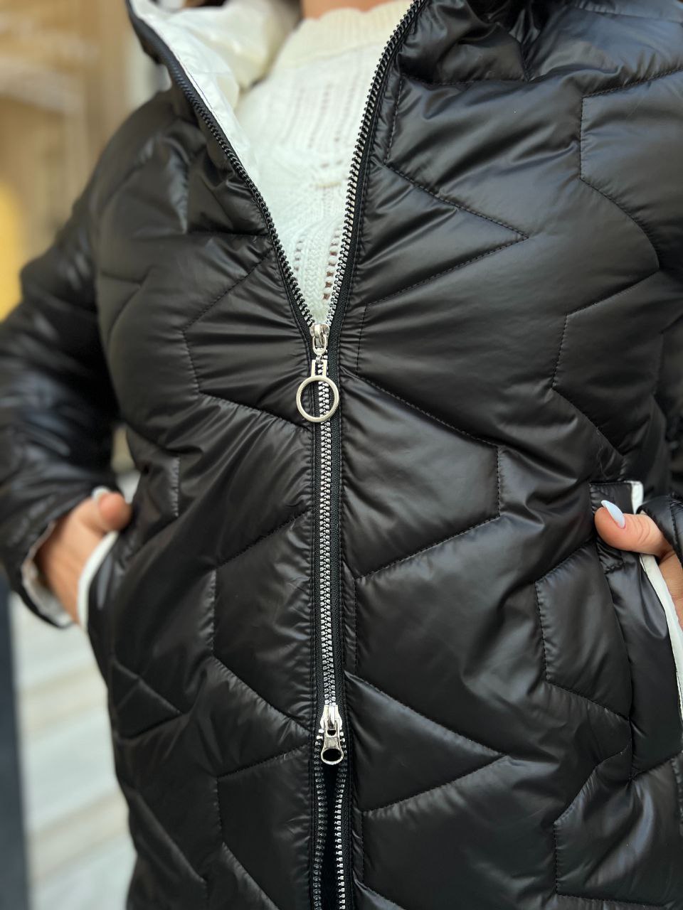 Глибокий капюшон. Куртка має два бокові кармані.
