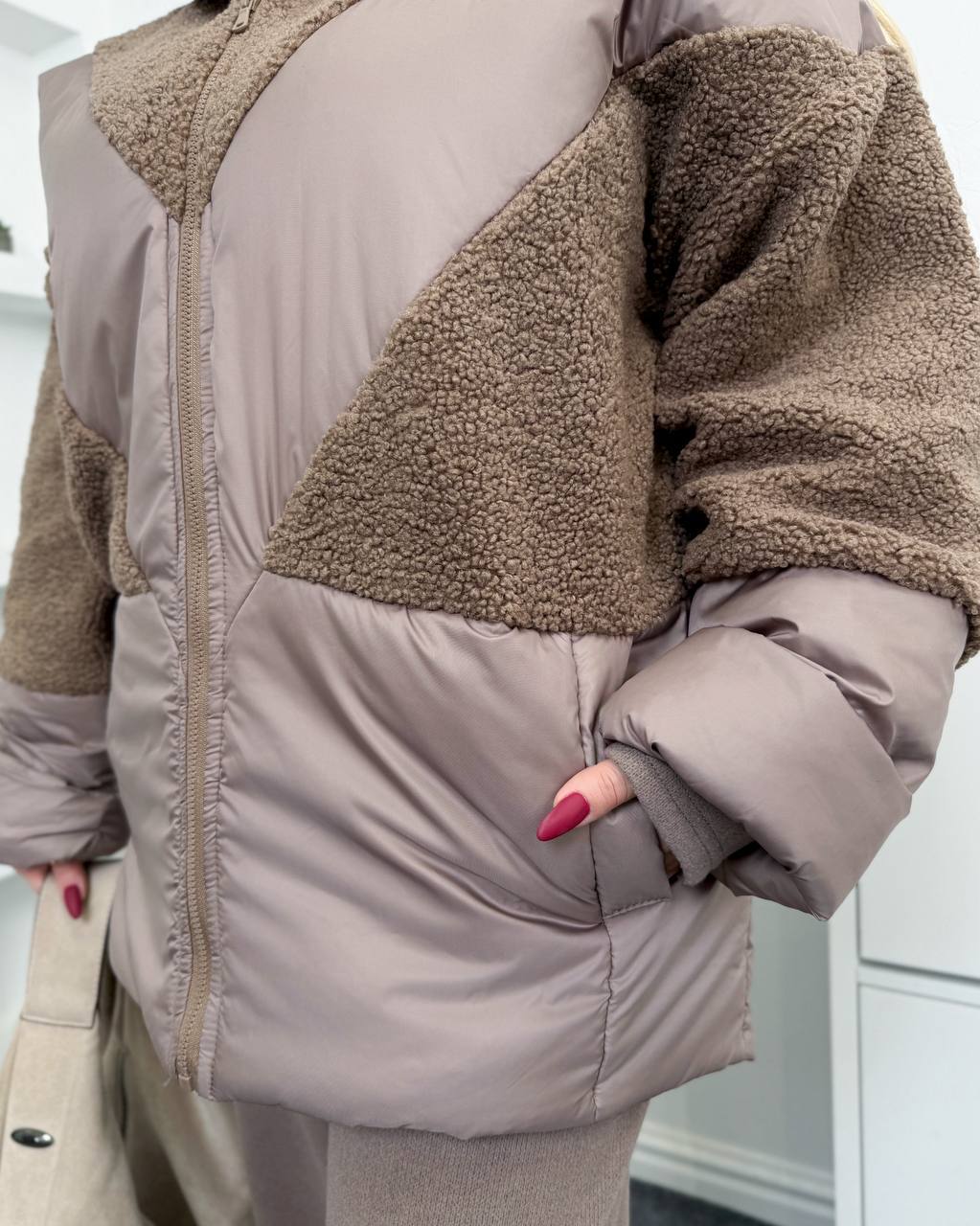 Куртка “Єврозима” комбінованого типу — це стильний верхній одяг, який поєднує плащову тканину та еко-хутро для максимального комфорту, вільного крою зі спущеним плечем.Комфортний капюшон, рукав з підкатом і зручними кишенями. Застібка на блискавці. Затяжка по низу.