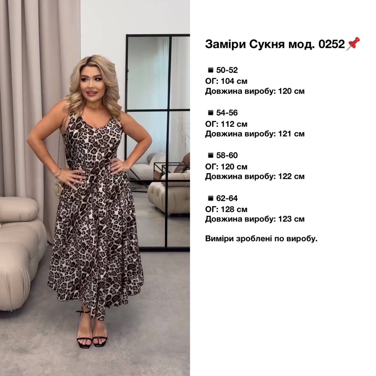 Стильна міді-сукня без рукавів з леопардовим принтом. Воно має приталений верх і злегка розкльошені спідниці, створюючи жіночний силует. Глибокий V-подібний виріз підкреслює зону декольте, а легка тканина надає образу легкості. Сукня ідеально підходить як для вечірнього виходу, так і стильної повсякденної прогулянки