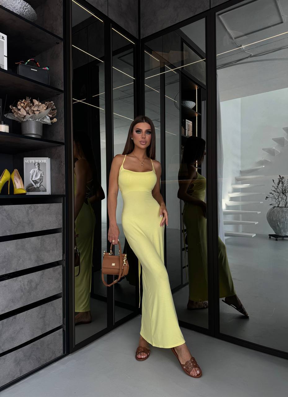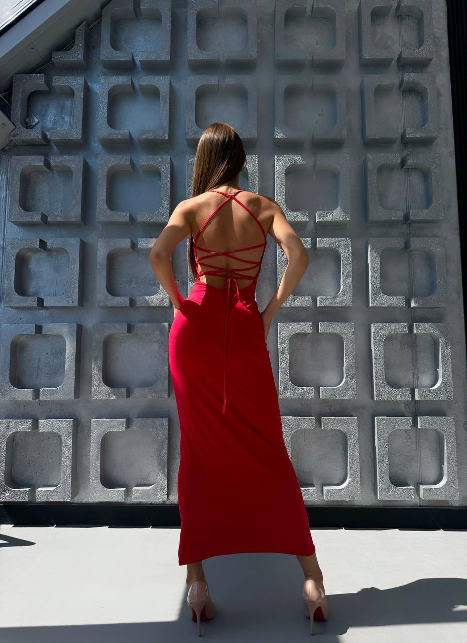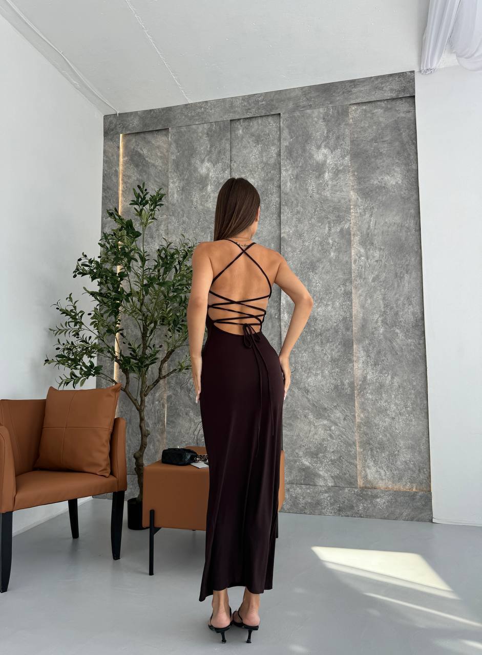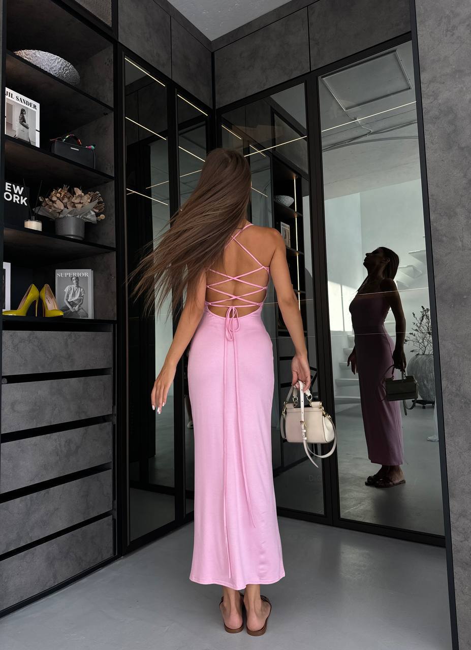Літня сукня максі з відкритою спиною та перехресними зав’язками в довжині максі додає образу грації та витонченості.
