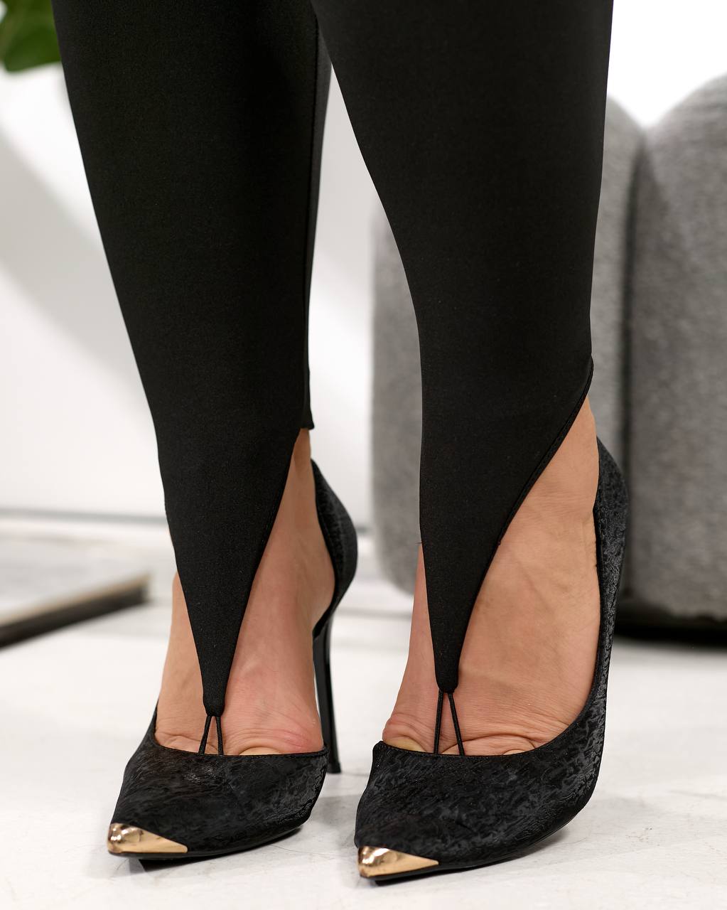 Лосини з петелькою під стопу та високою посадкою, виконані з щільного еластичного трикотажу, що ідеально підкреслює облягаючий силует і забезпечує максимальний комфорт у носінні. Завдяки петельці під стопу модель надійно фіксується, не задирається та візуально подовжує ноги.