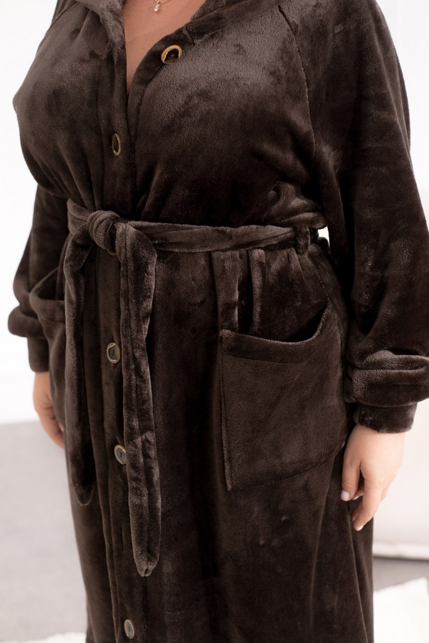 Твій новий улюблений халат — про ніжність, тепло і турботу щодня.Він ніжно огортає, зігріває й дарує комфорт після насиченого дня. Застібка на ґудзики, капюшон, довгі рукави з манжетами та практичні накладні кишені створюють ідеальне поєднання стилю та зручності.