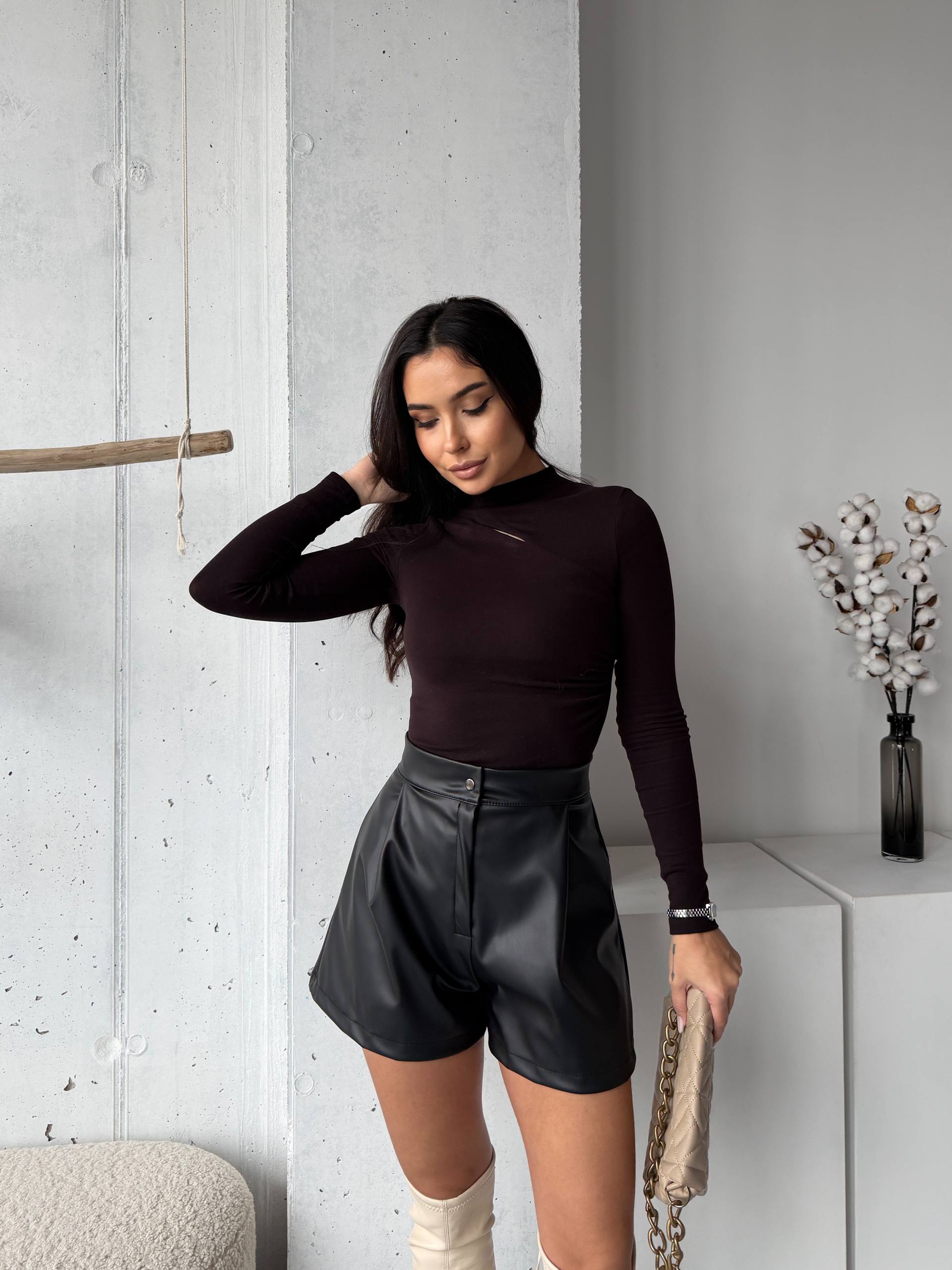 Опис : шорти на кнопці з працюючим замком з матової екошкіри на флісі