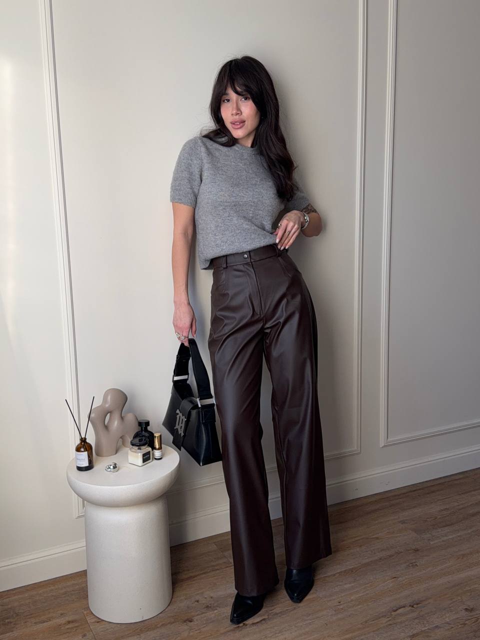 Стильні штани з матової еко шкіри , вільного крою та високою посадкою