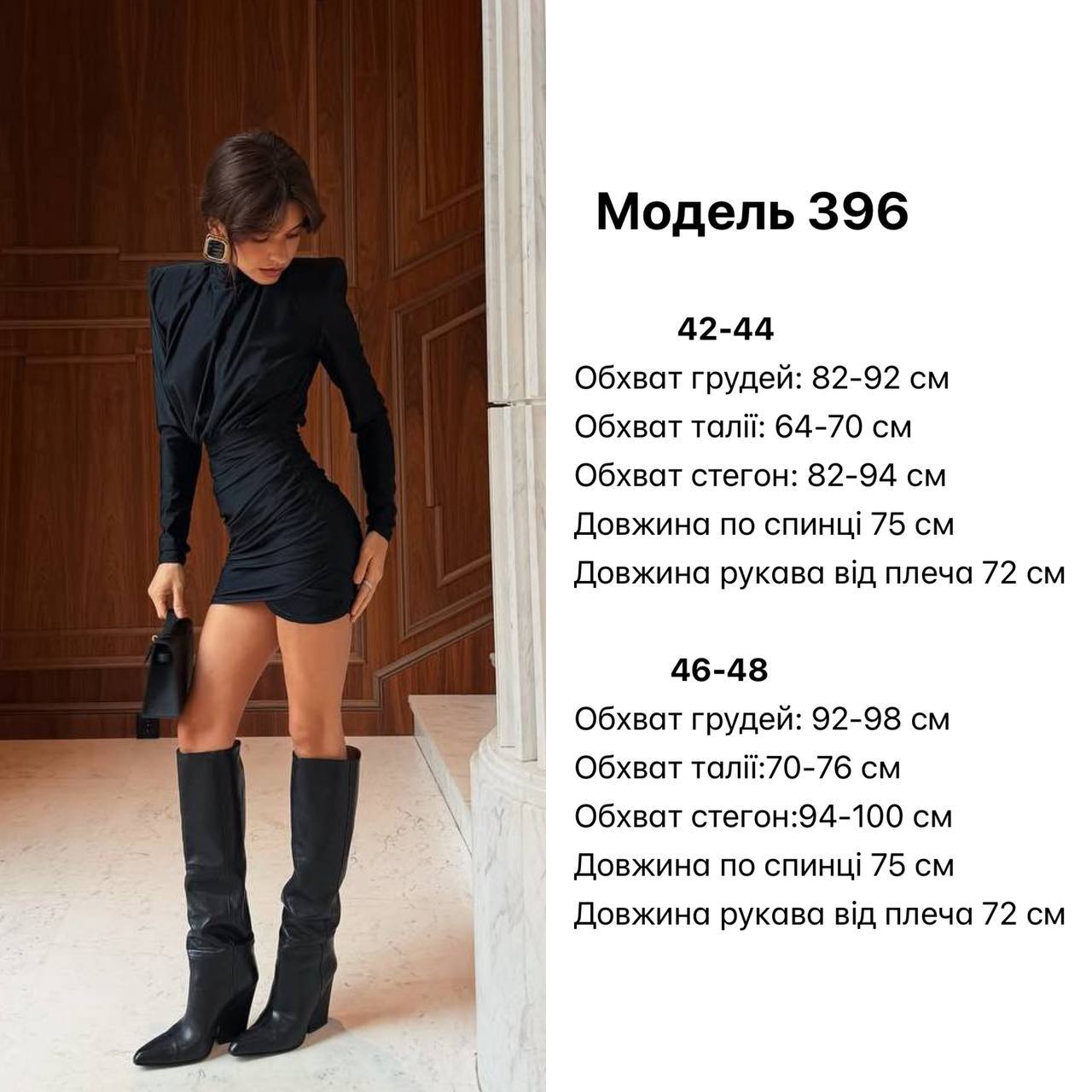 Міні-сукня з акцентними плечима та драпіровкою — еталон сучасної елегантності. Щільна, але еластична тканина комфортно сідає по фігурі, створюючи виразний жіночний силует. Ідеальна для вечірки, ресторану або святкової події❤️