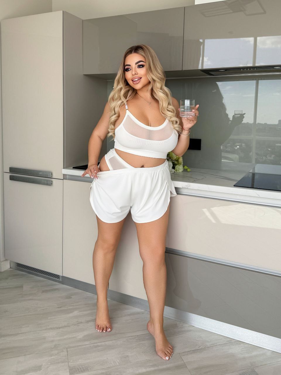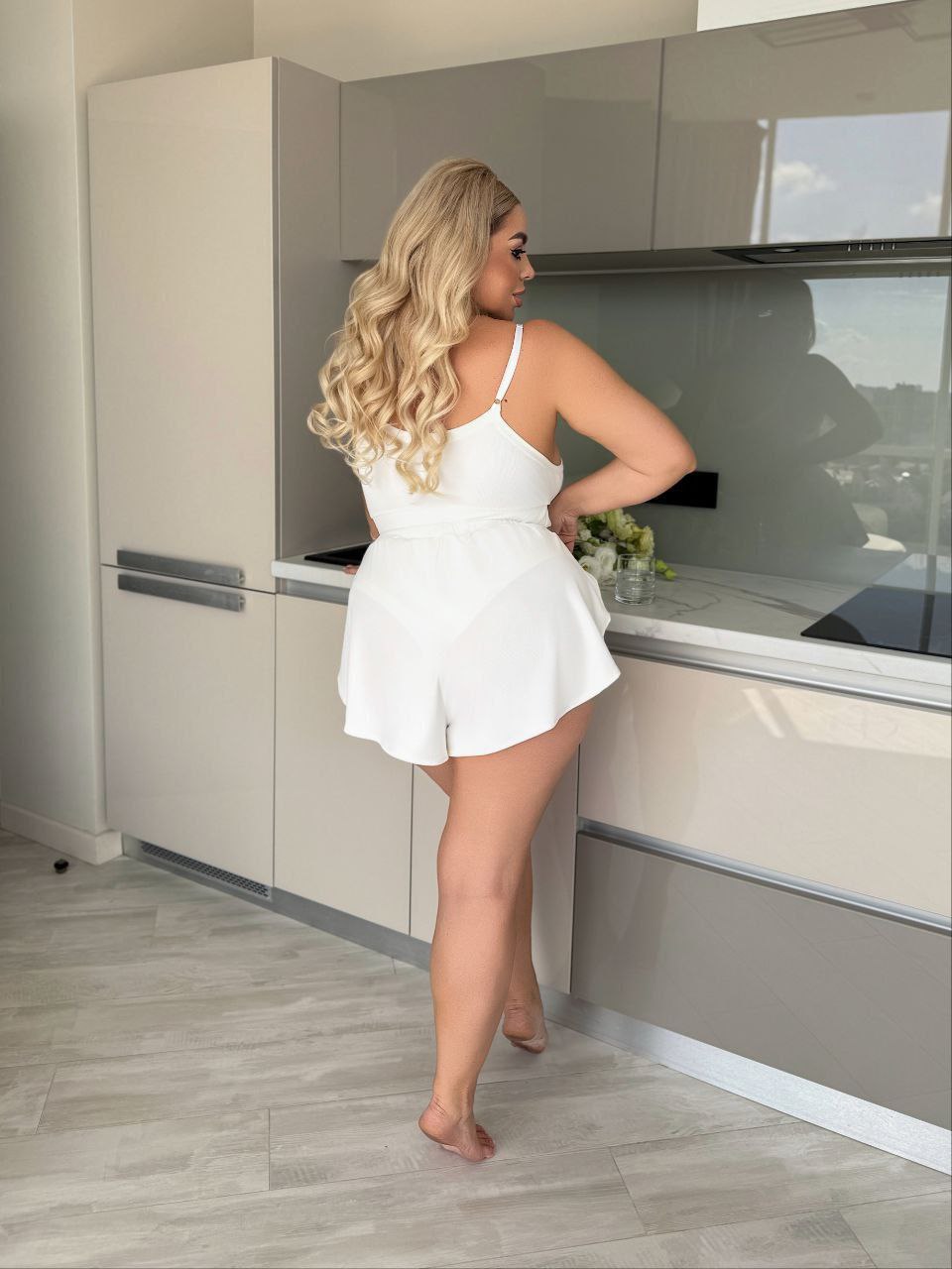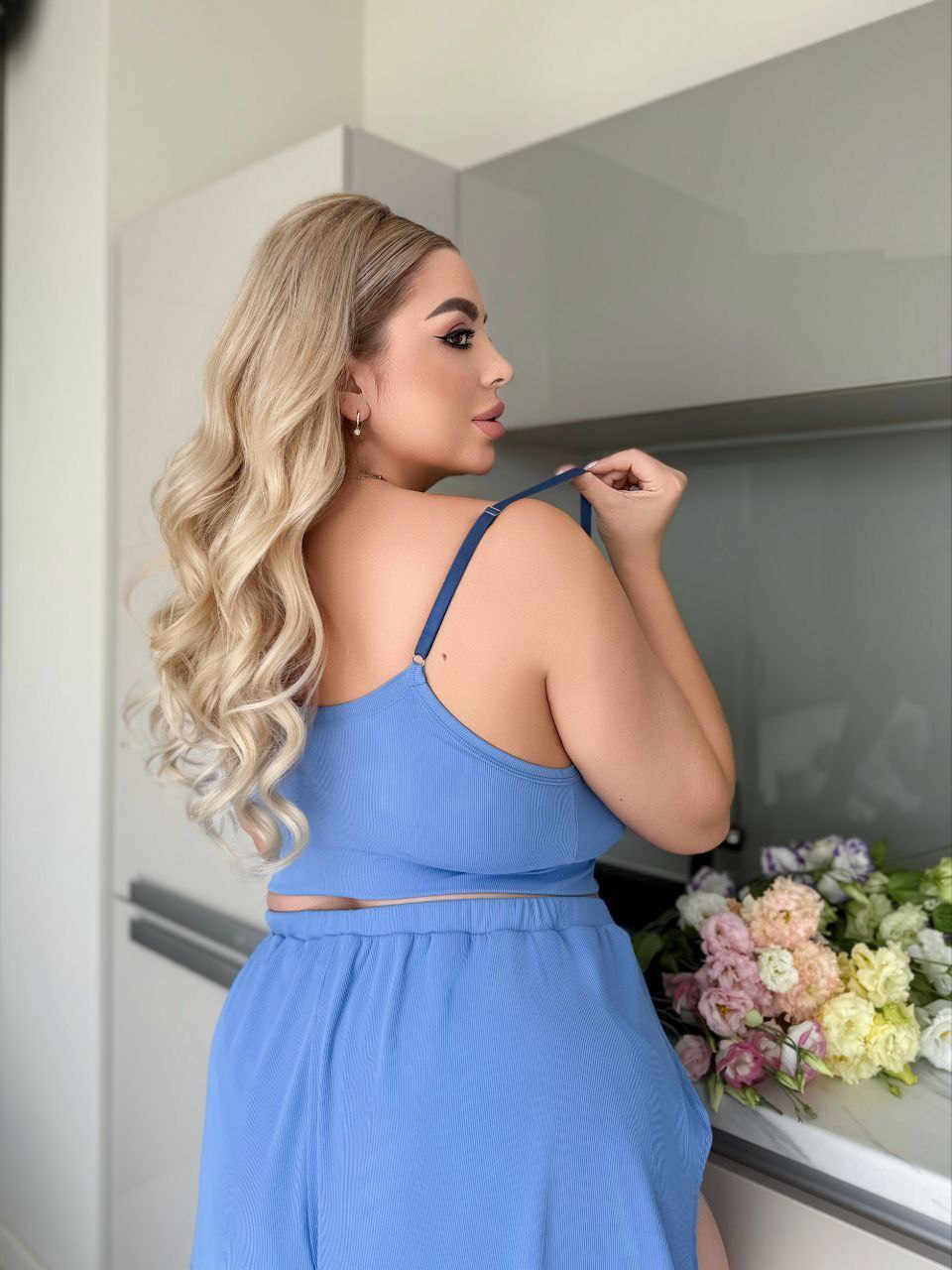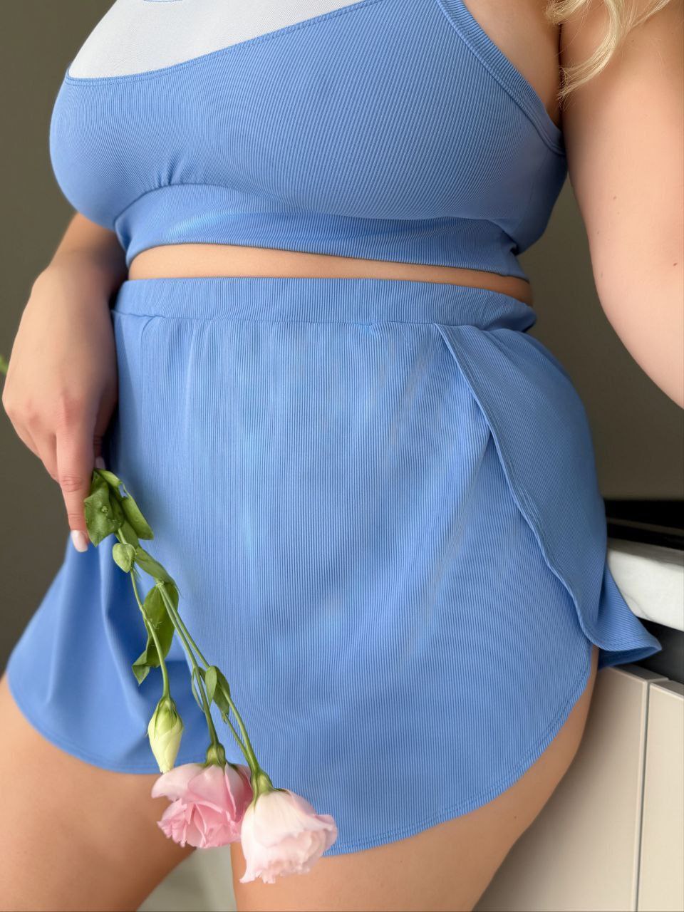 58-60 Об’єм грудей – 114 см, Об’єм талії (довжина гумки) – 96см, Об’єм стегон – 136 см, Висота шорт – 35 см, Висота ТОПу – 35 см, Об’єм гумки під грудьми – 100 см