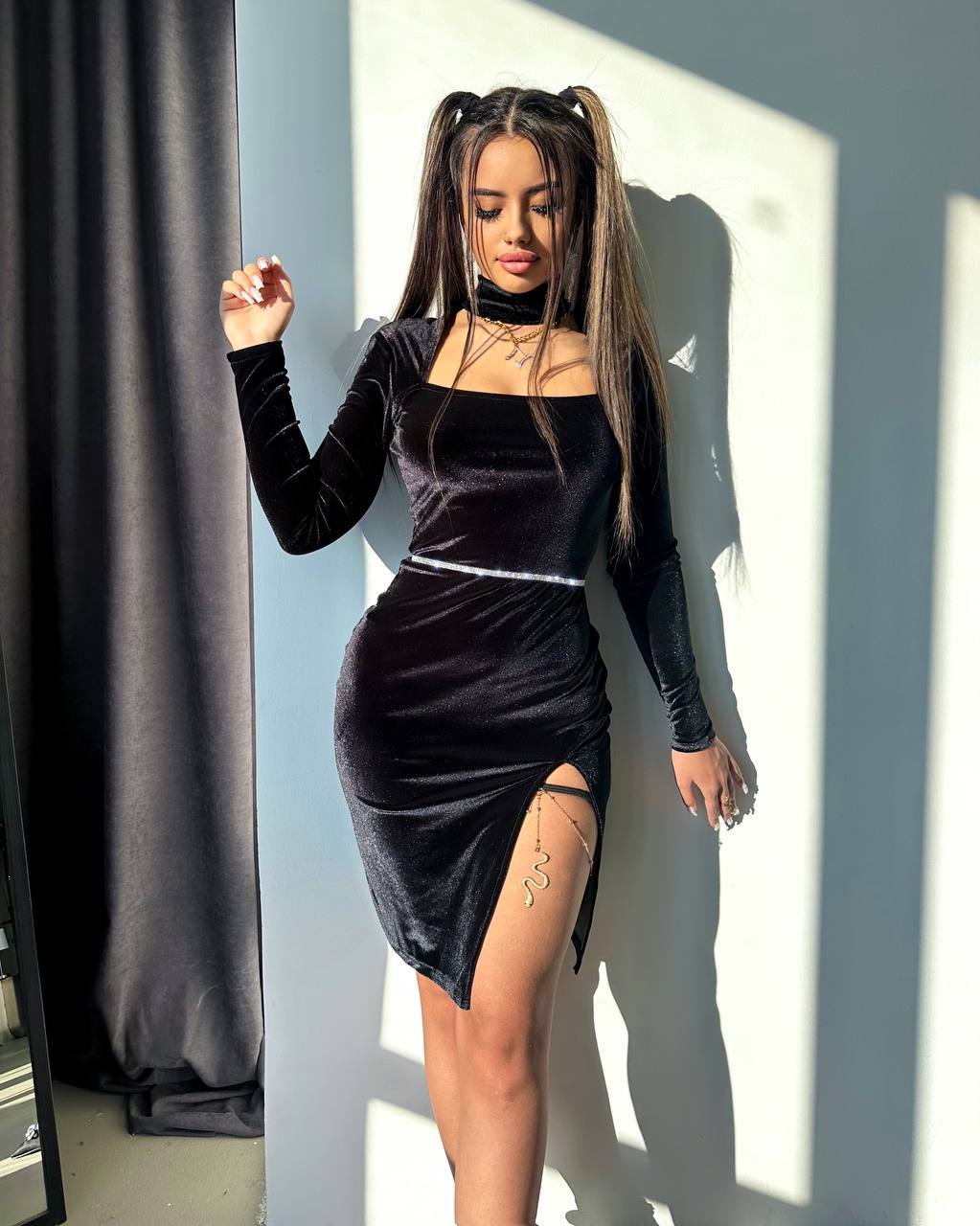 Оксамитова сукня. У комплекті на пояс йде стрічка з камінням, яке дуже красиво мерехтить на сонці та при штучному освітленні. Можна носити з нею або без.