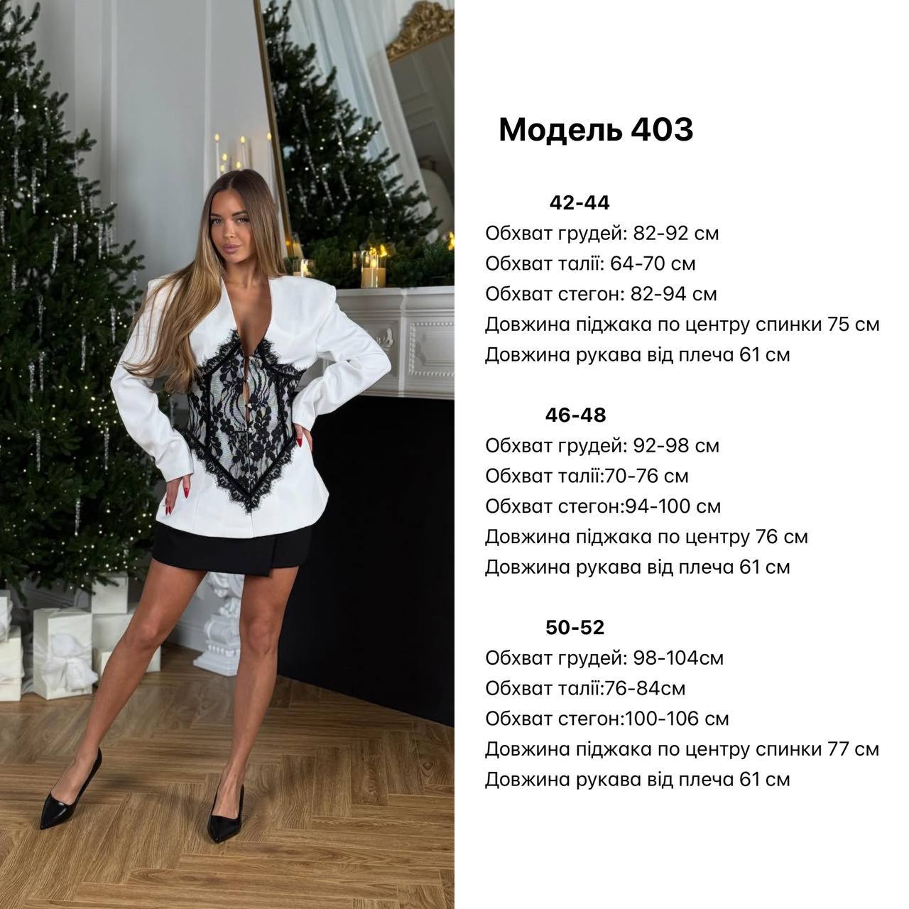 Ефектний жакет із акцентом на талії та вишуканими мереживними деталями, які додають образу жіночності й шарму. Чіткий крій красиво формує силует, а стильний дизайн робить його ідеальним варіантом як для святкових подій, так і для елегантних вечірніх образів. Жакет, у який закохуються з першого погляду❤️