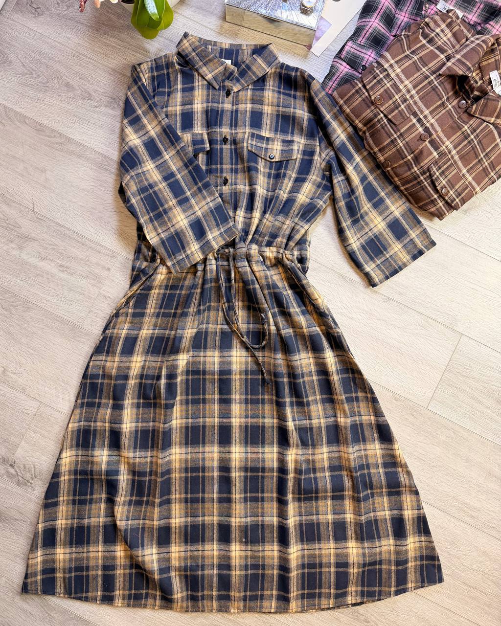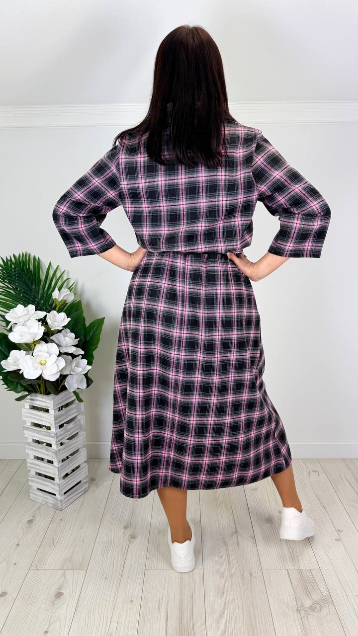Дуже зручне та водночас стильне плаття, на кожен день та на свято. Плаття із рукавом 3/4, із кишенями. Талію можна затягнути куліскою. Попереду на грудях на ґудзиках.