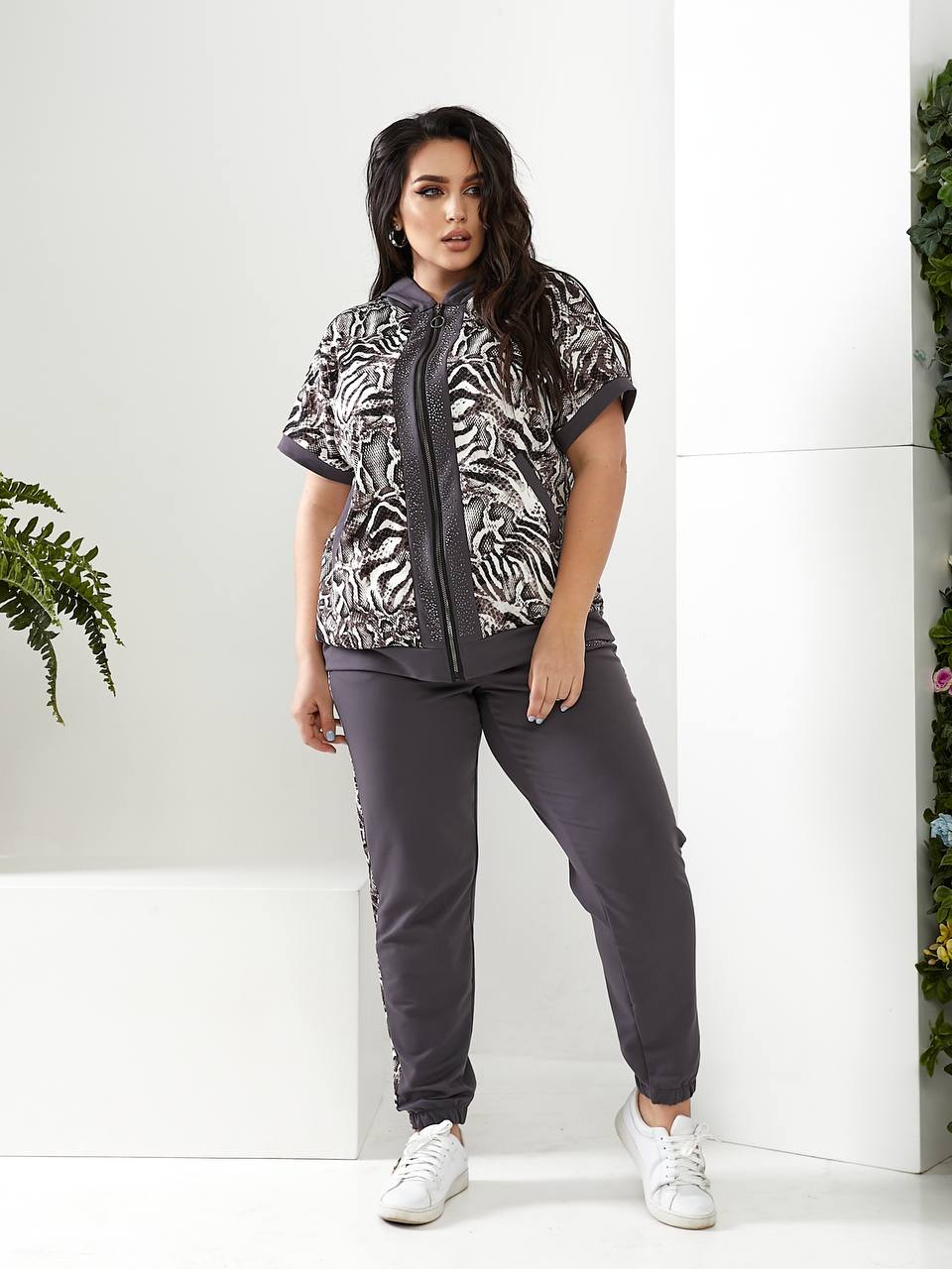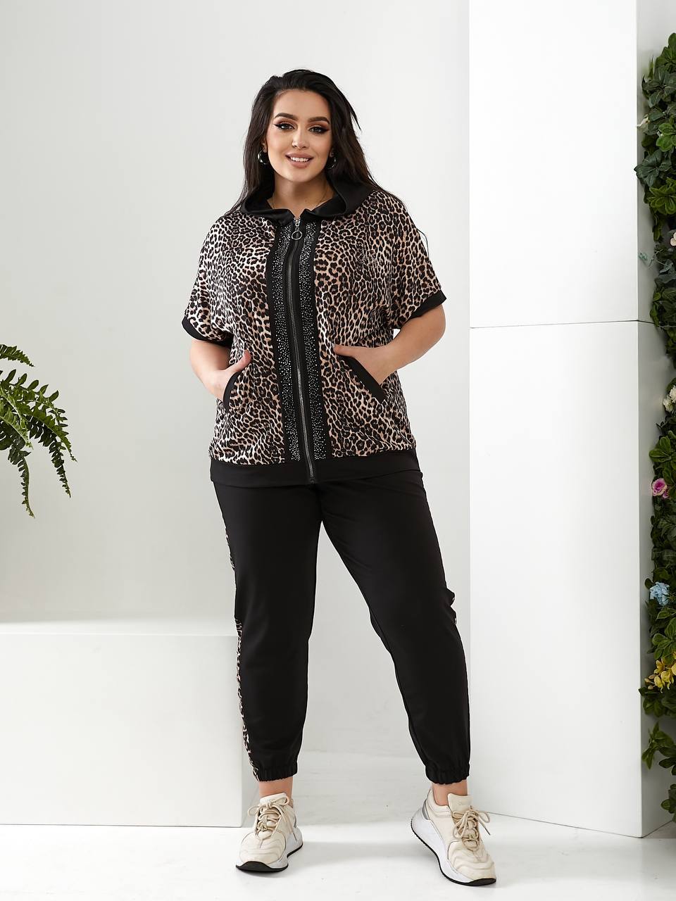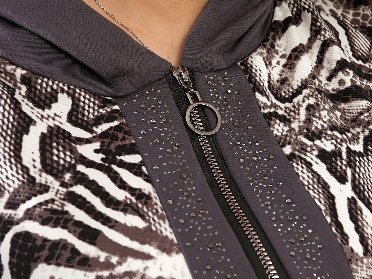 Ефектний комплект-двійка для тих, хто цінує комфорт і хоче залишатися в центрі уваги. Акцентний анімалістичний принт (змія, леопард, зебра) та витончені доріжки зі страз додають образу блиску та візуально роблять силует стрункішим.