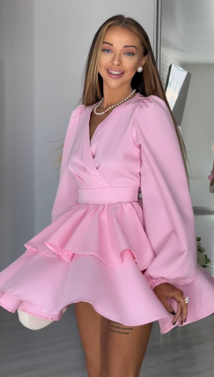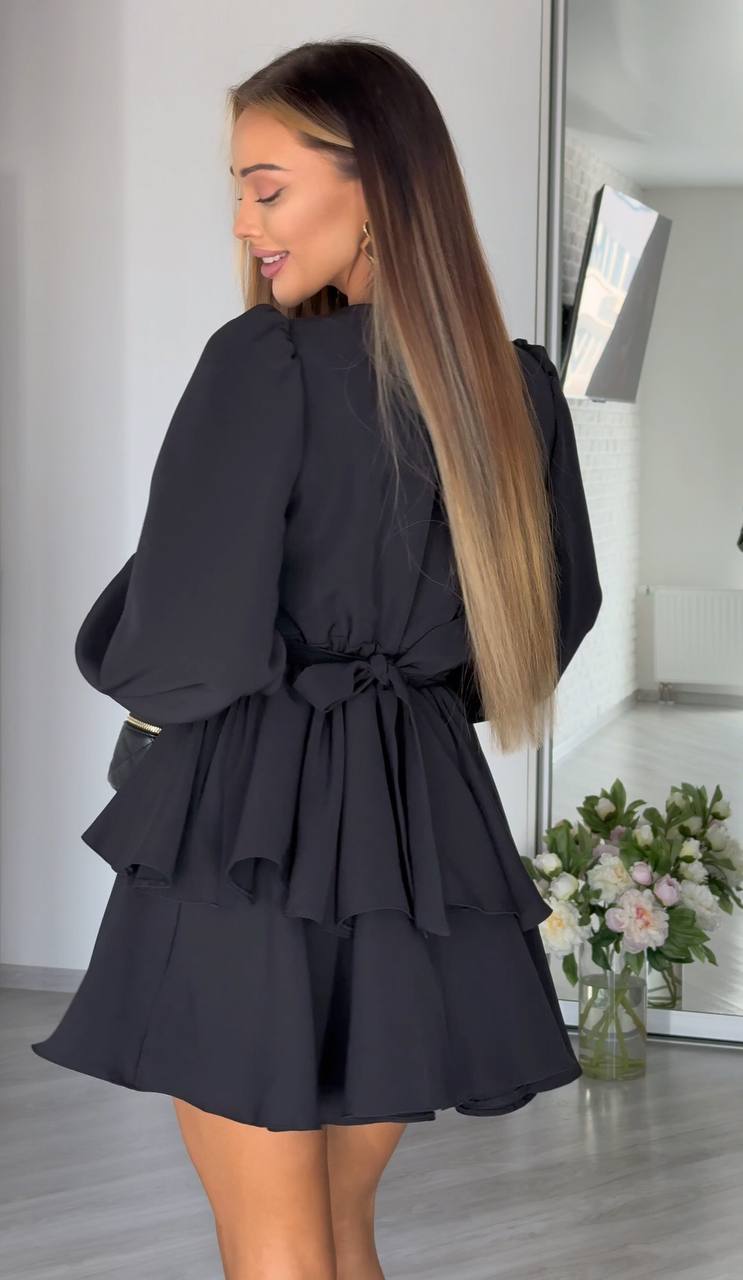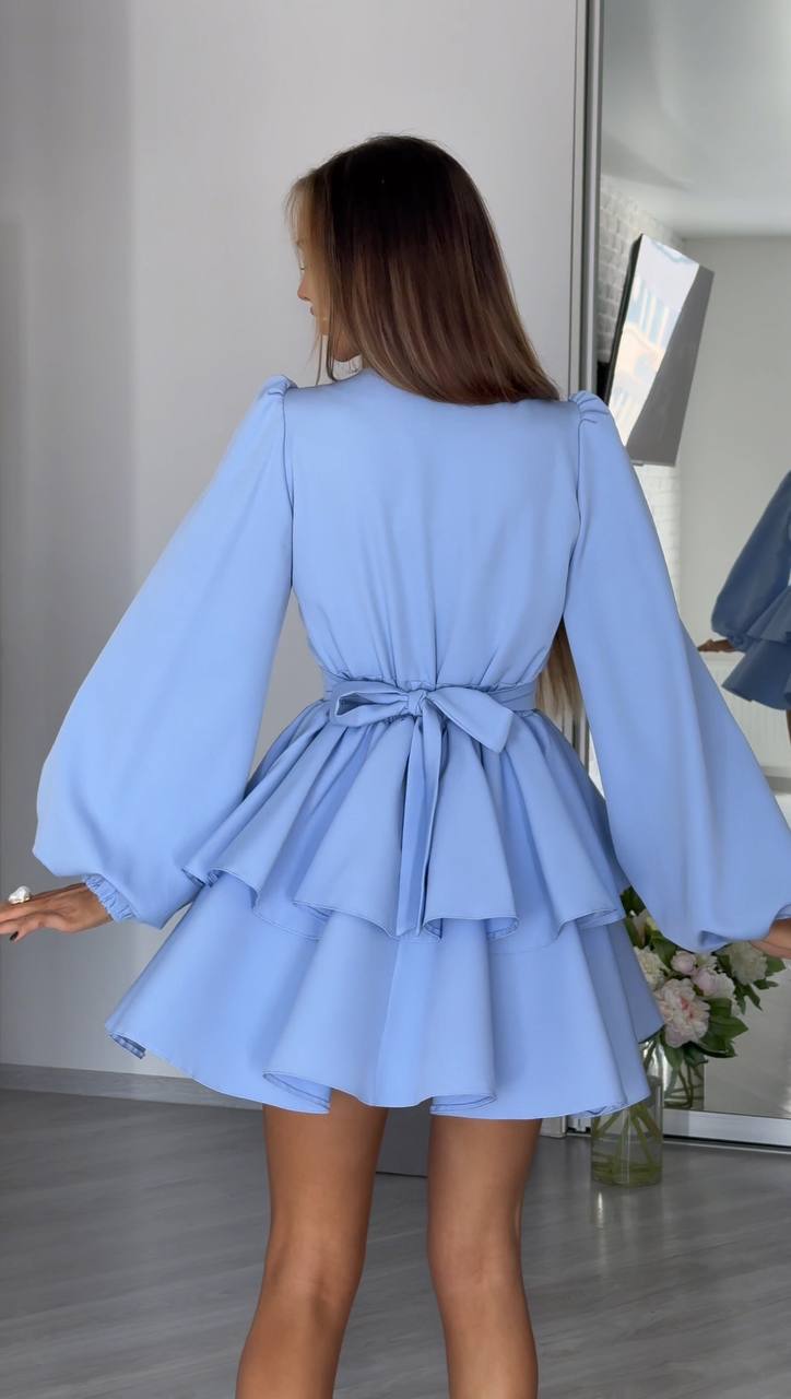 Розкішна сукня з воланами, на поясі ззаду гумка і тому підходить на будь-яку талію, зав’язується пояс ззаду і не видно гумку.