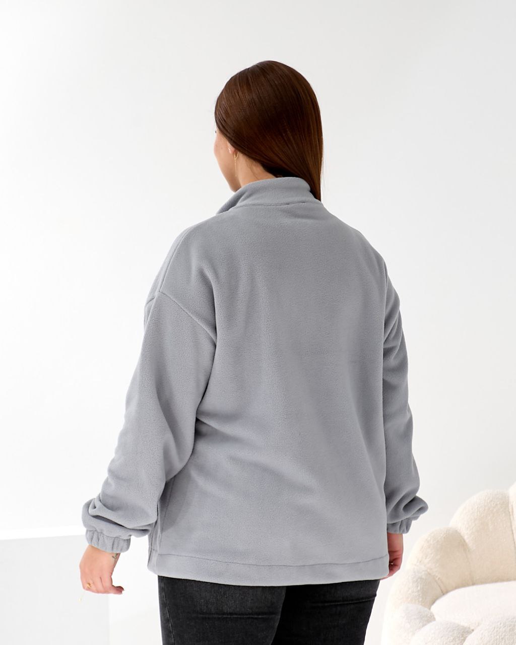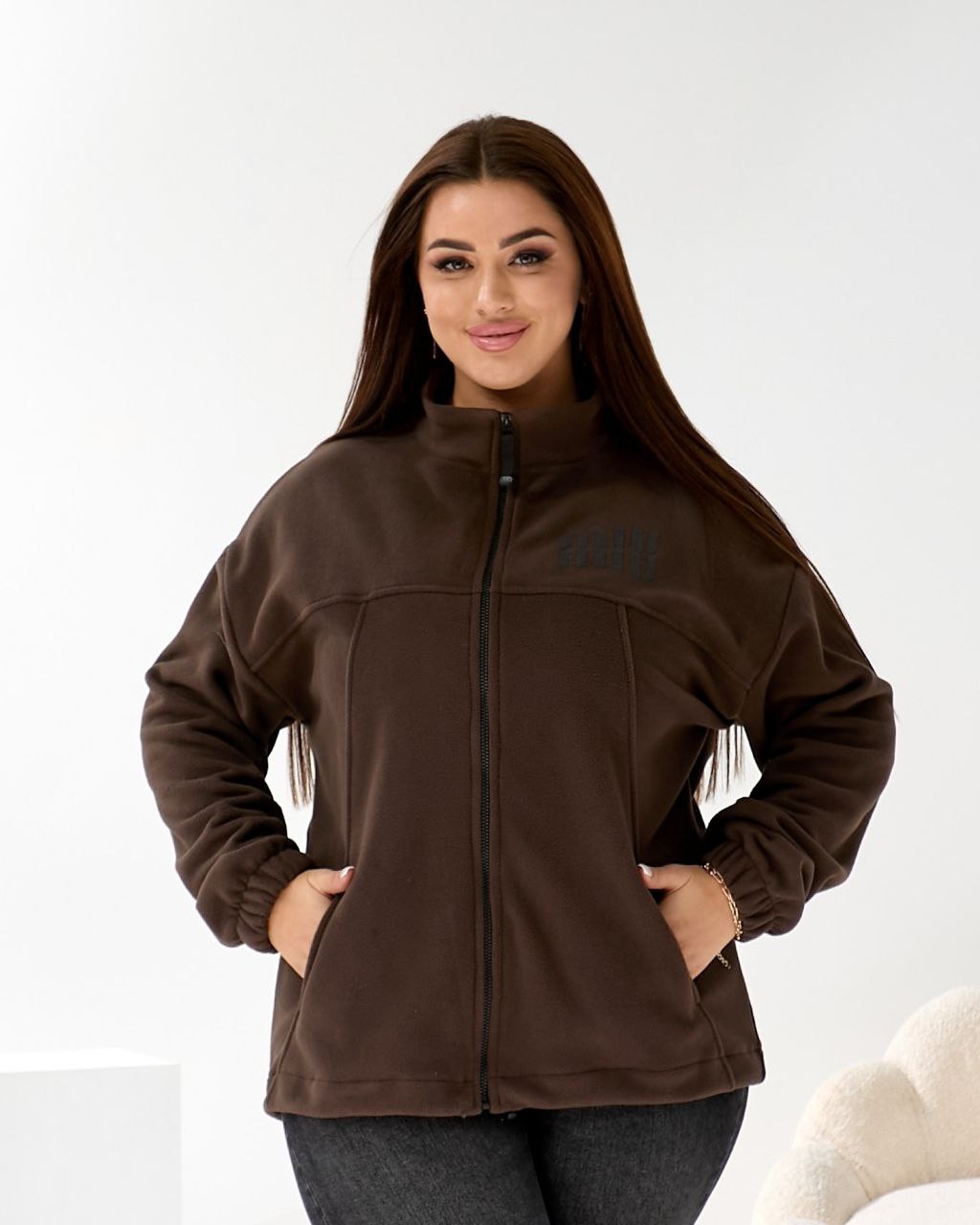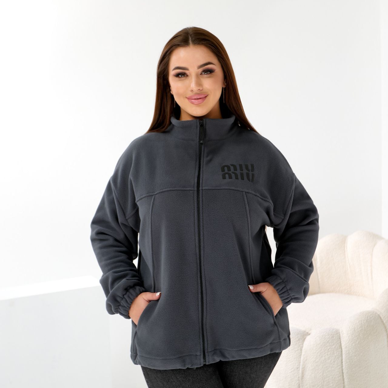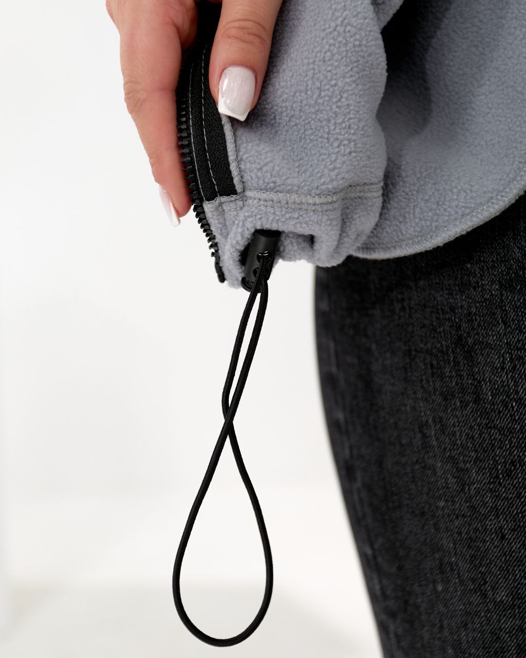 Комірець-стійка.Застібка на блискавці,по низу виробу резинка на стопорах,дає можливість стягувати низ кофти,або носити прямий силует.Рукава по низу на резинці.