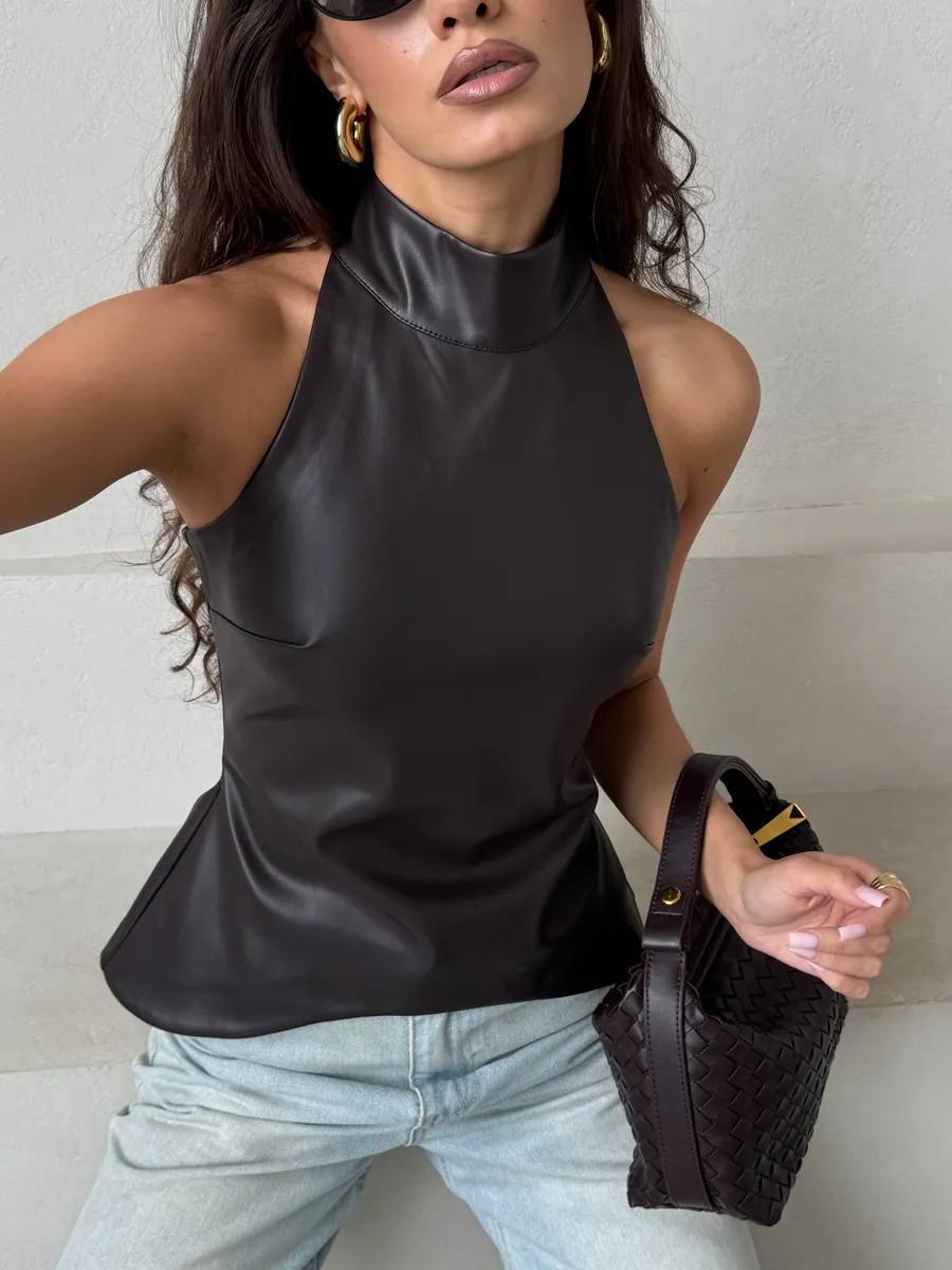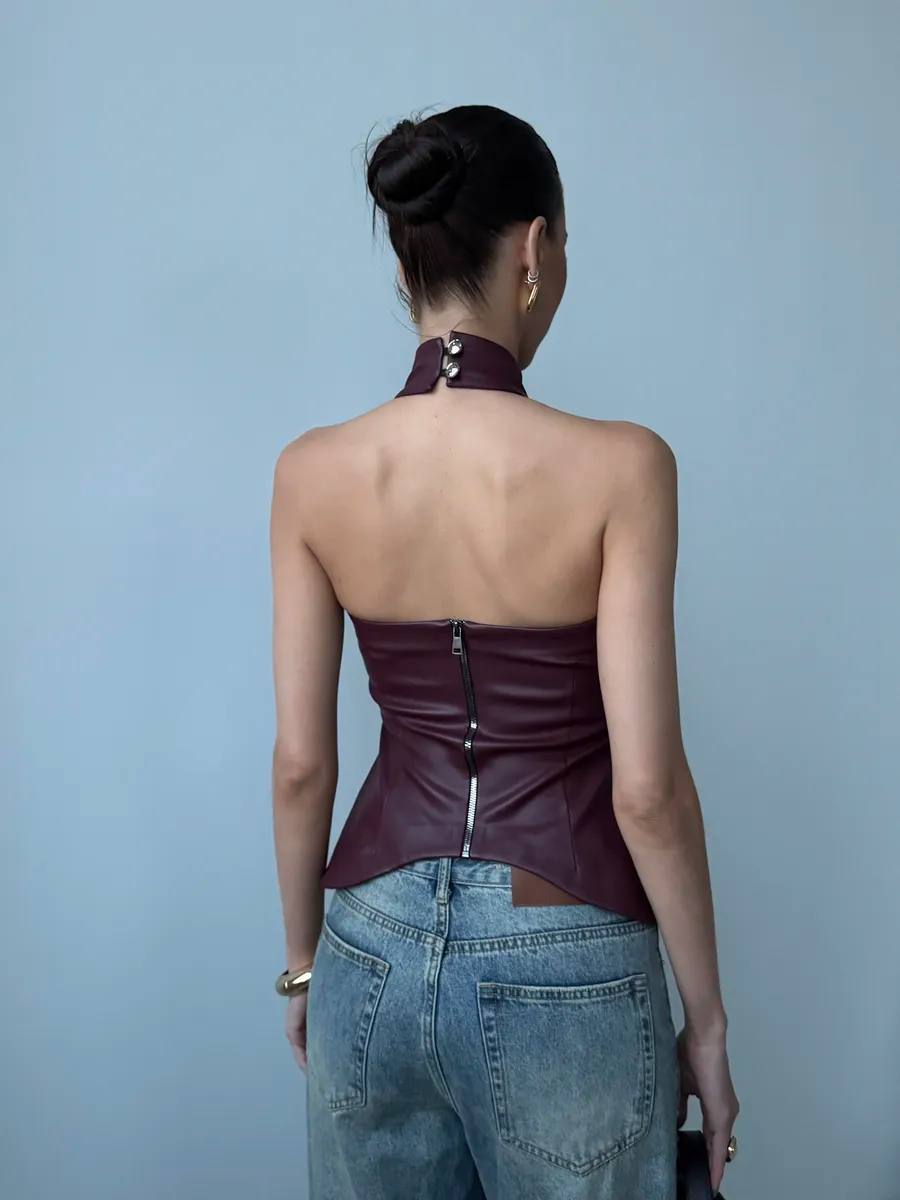 Топ Мод.728 Тканина – еко шкіра Розміри – 42-44, 46-48 Кольори – шоколад, бордо, чорний