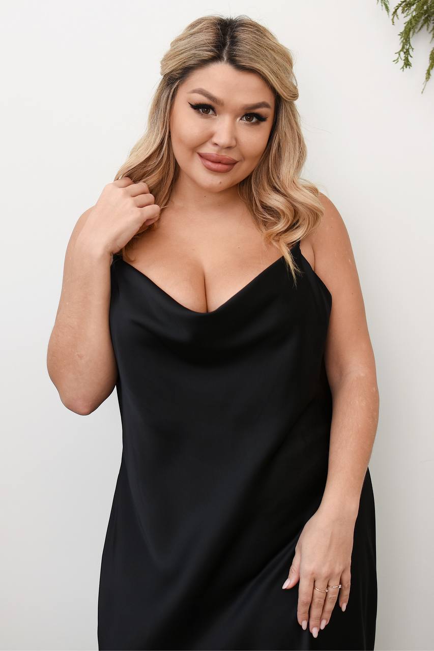 Елегантна сукня міді з шовкової тканини. Сукня має тонкі бретелі і вільний силует, що струмує, що створює ефект легкості і жіночності.