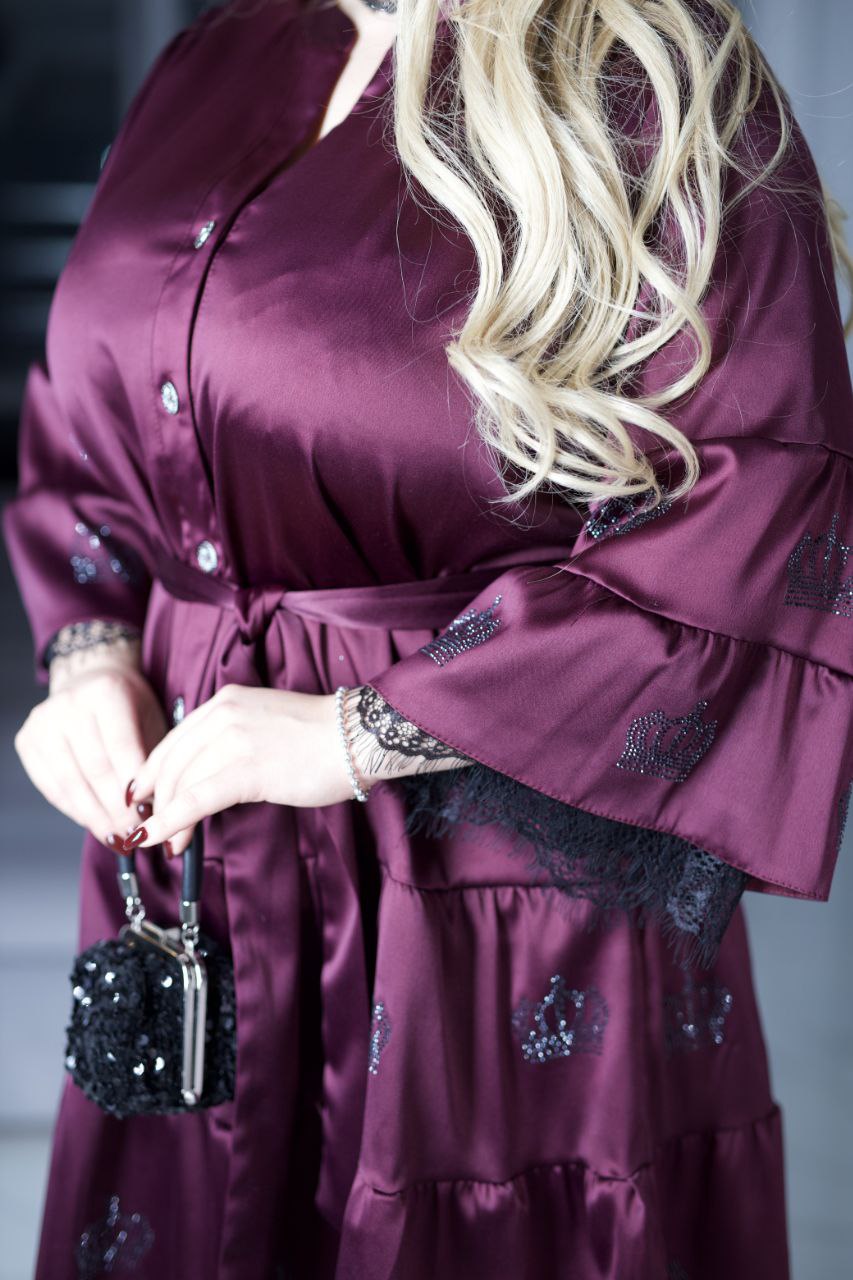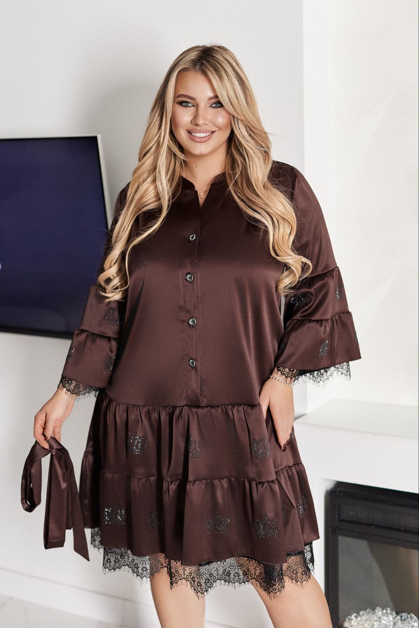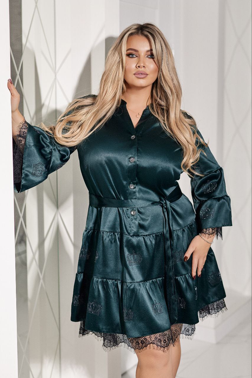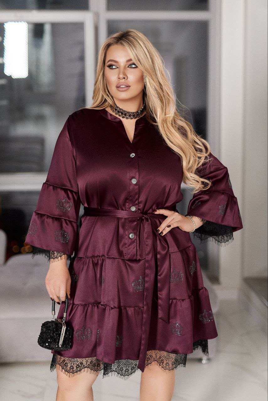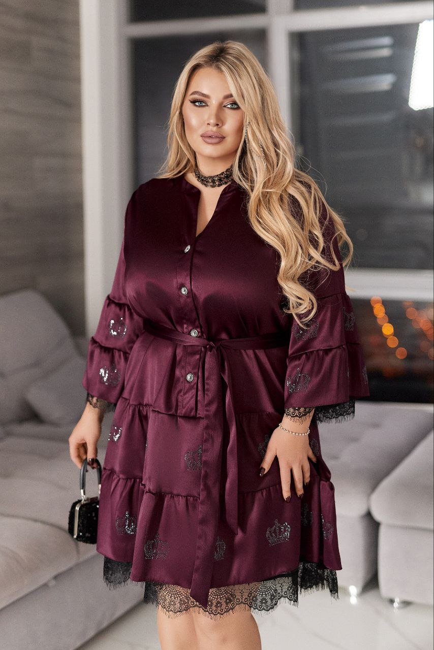 Сатин Шовк- Армані – чудової якості + підклад шифон + мереживо + стрази якості DMS.