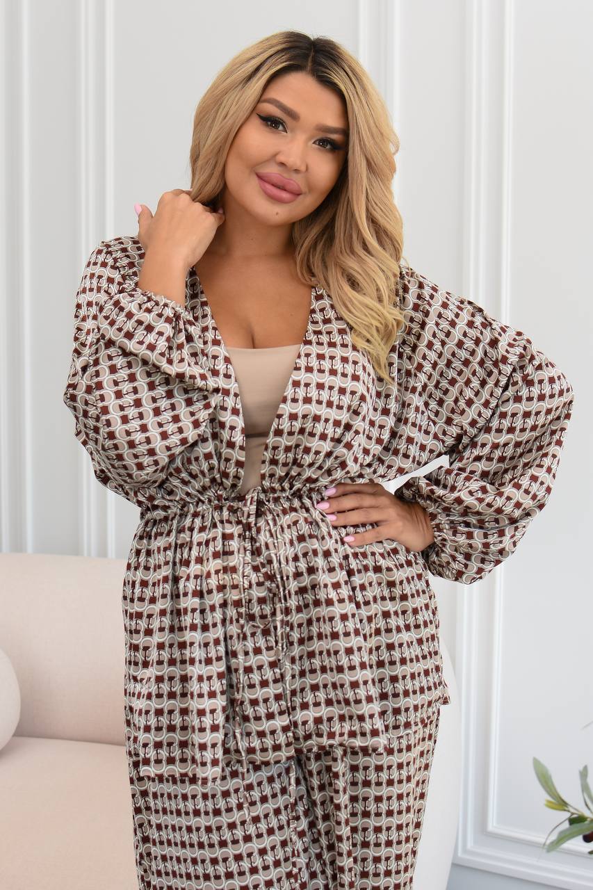 Ідеальне поєднання елегантності й розслабленого настрою. Складається з широких брюк та сорочки з довгими рукавами.