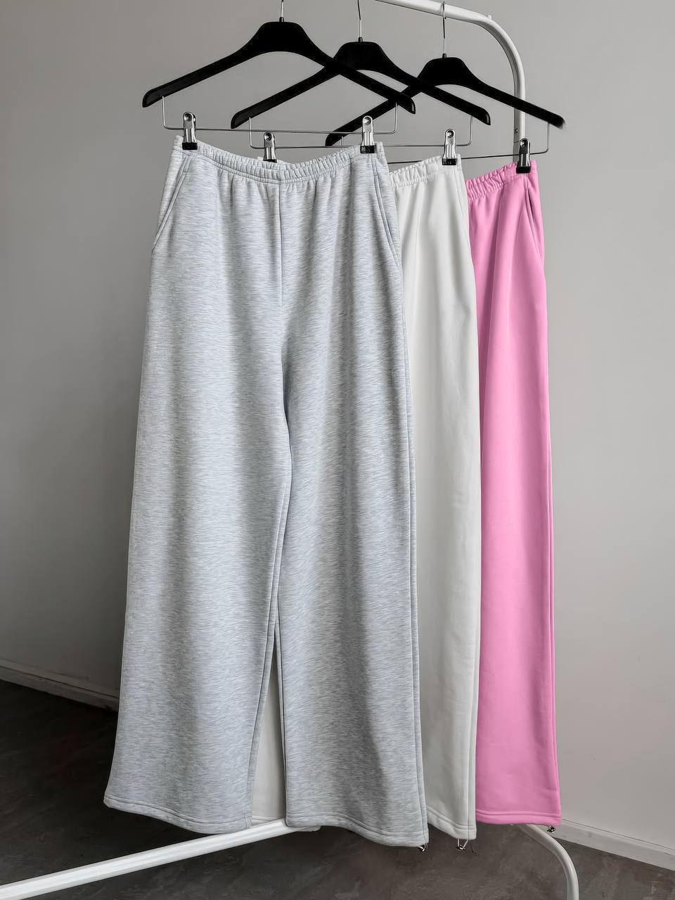 Комфортні штани вільного крою, – низ штанів на затяжках.