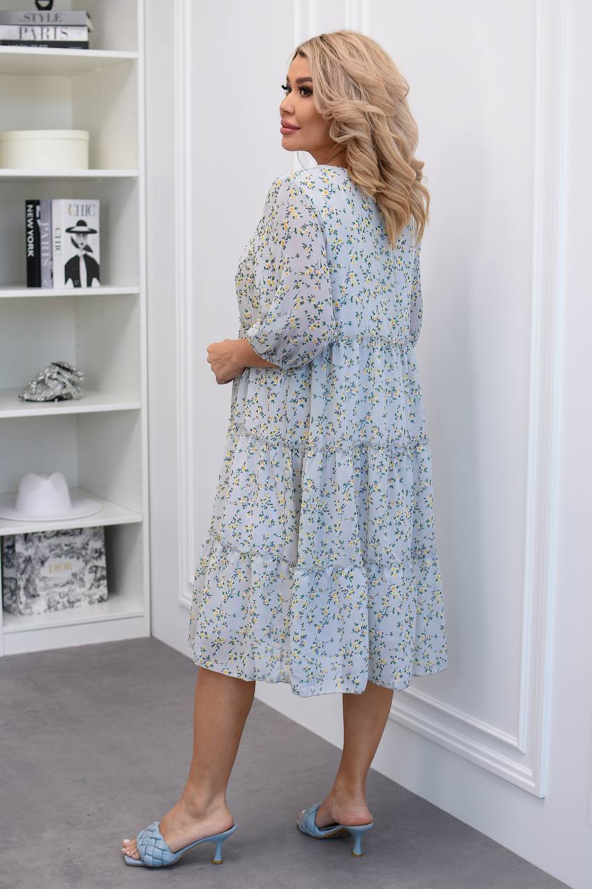 Сукня легка, жіночна і романтична. Воно виконане з повітряної тканини із дрібним квітковим принтом.