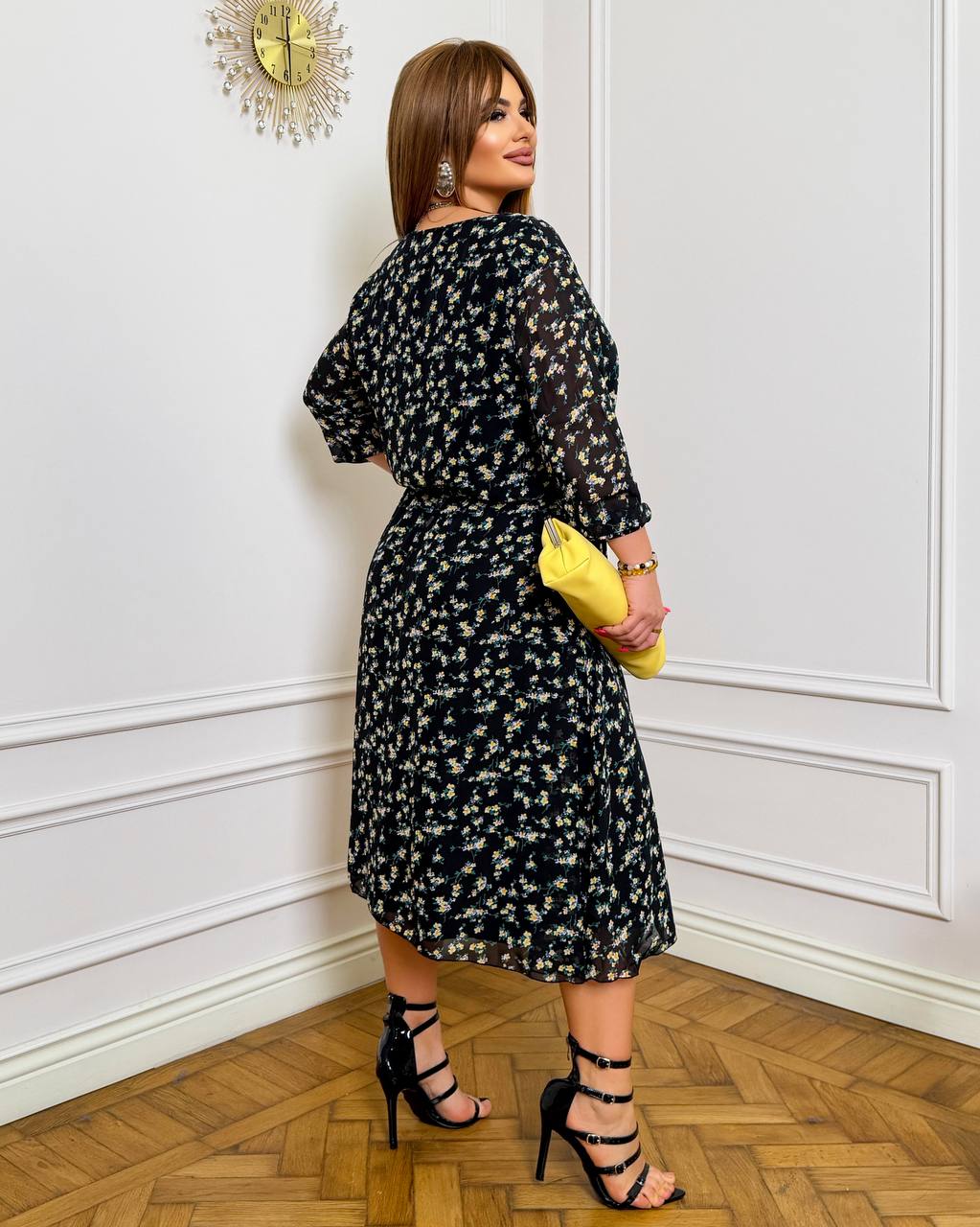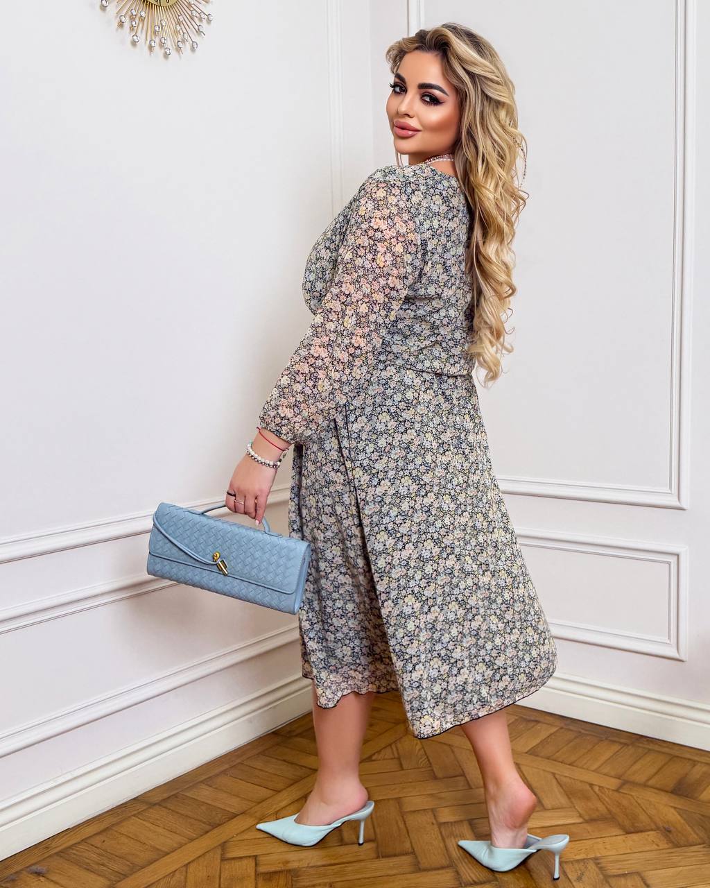 Ніжна сукня з легкого шифону на підкладці – ідеальний вибір для жіночного та елегантного образу. М’яка повітряна тканина красиво струмує по фігурі, а підкладка забезпечує комфорт та не просвічує. Вільний крій із акцентом на талії підкреслює силует і пасує різним типам фігури.
