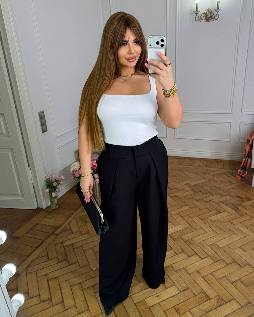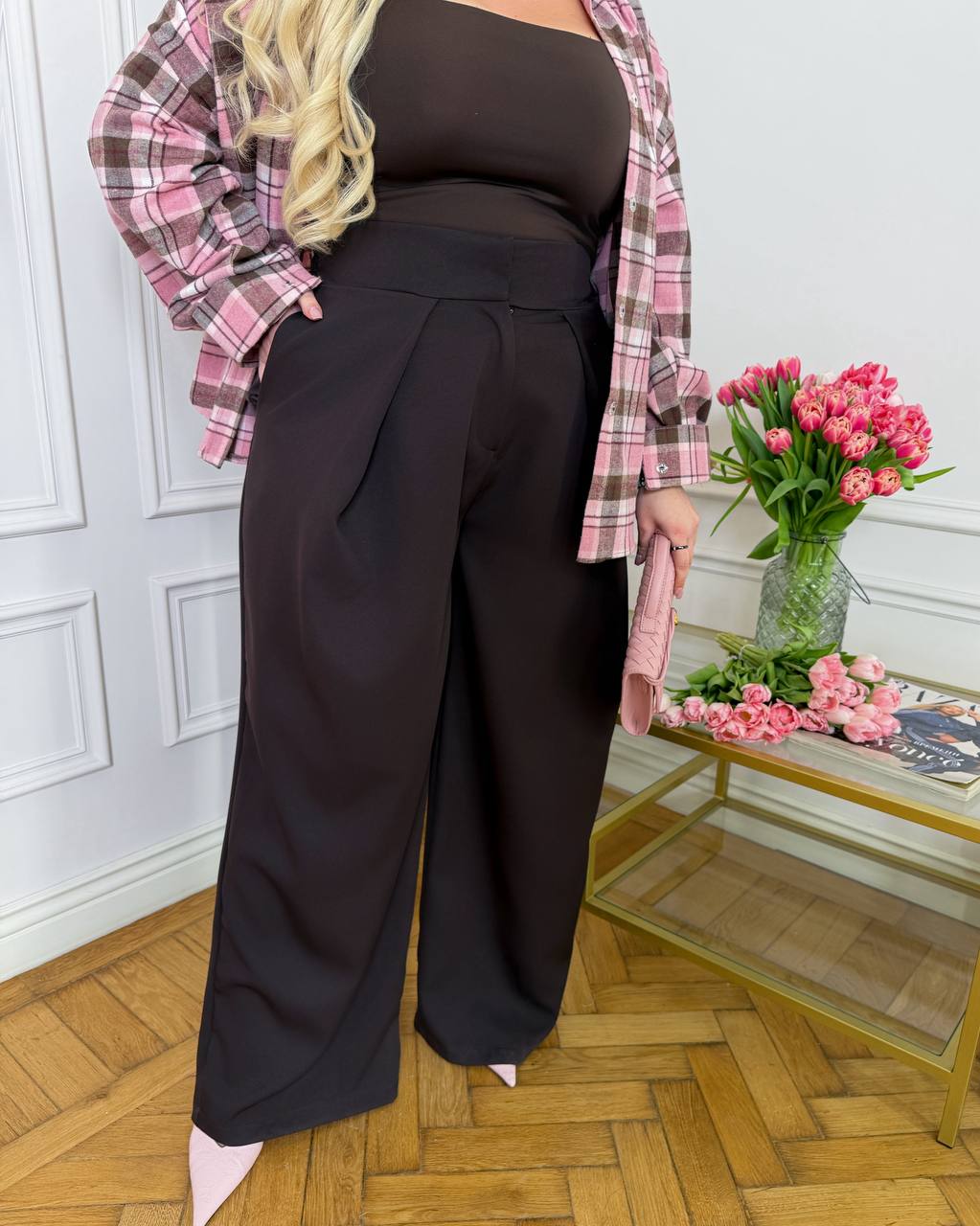 Ідельно комфорті брюки палаццо, робочий гульфик. Пояс на прихованих застібках позаду резинка для більш еластичності талії.