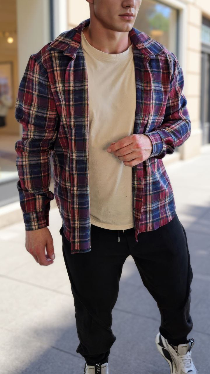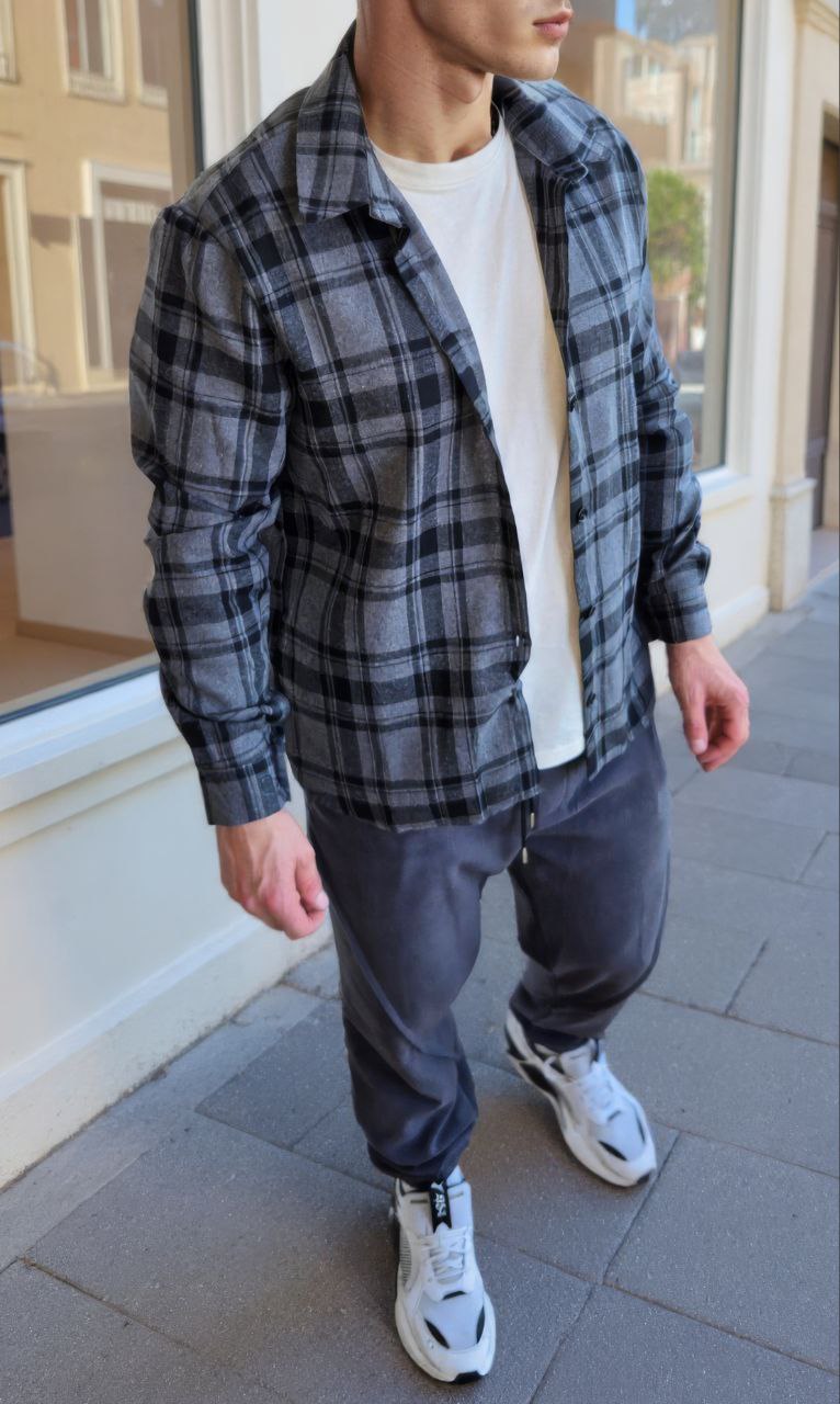 ✨Комфортна сорочка в клітинку з м’якої фланелі.Класичний крій,комір-стійка,довгі рукави з манжетами на ґудзиках.
