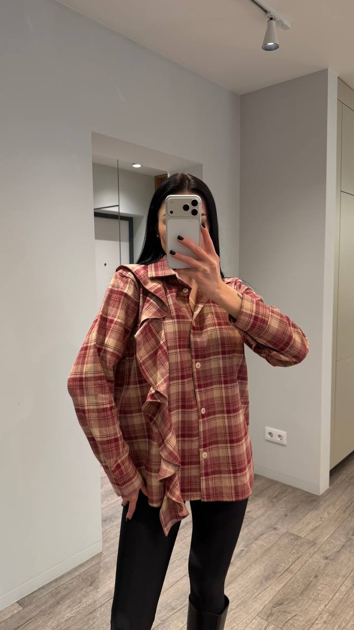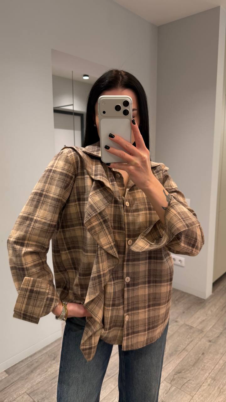 Ідеальний баланс між класикою та трендом — клітинка + акцентний рюш, який додає жіночності та характеру✨