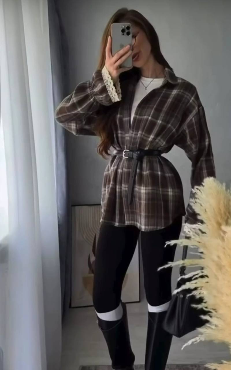 Стильна та зручна сорочка в клітинку у дуеті з мереживом у трендових кольорах,незамінна річ жіночого гардеробу, вона ідеально підійде для прогулянок та повсякденних образів,сорочка відмінної якості та пошиття.