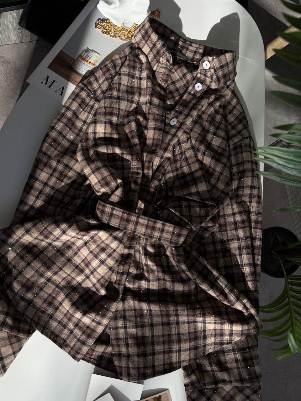 Сорочка зі стразами, в якій ти сяятимеш як сонечко, всі погляди будуть твої, оригінальна кишеня не як у всіх, поясок у комплекті.