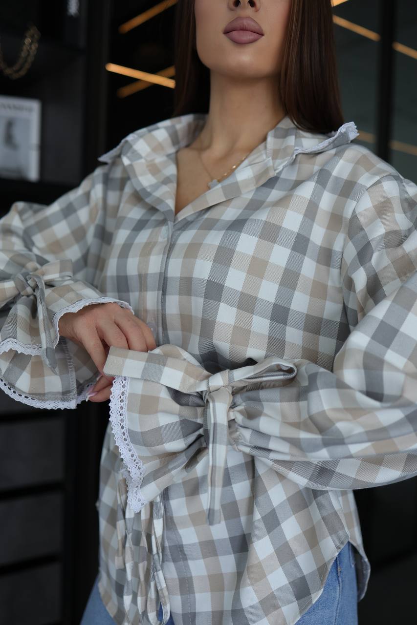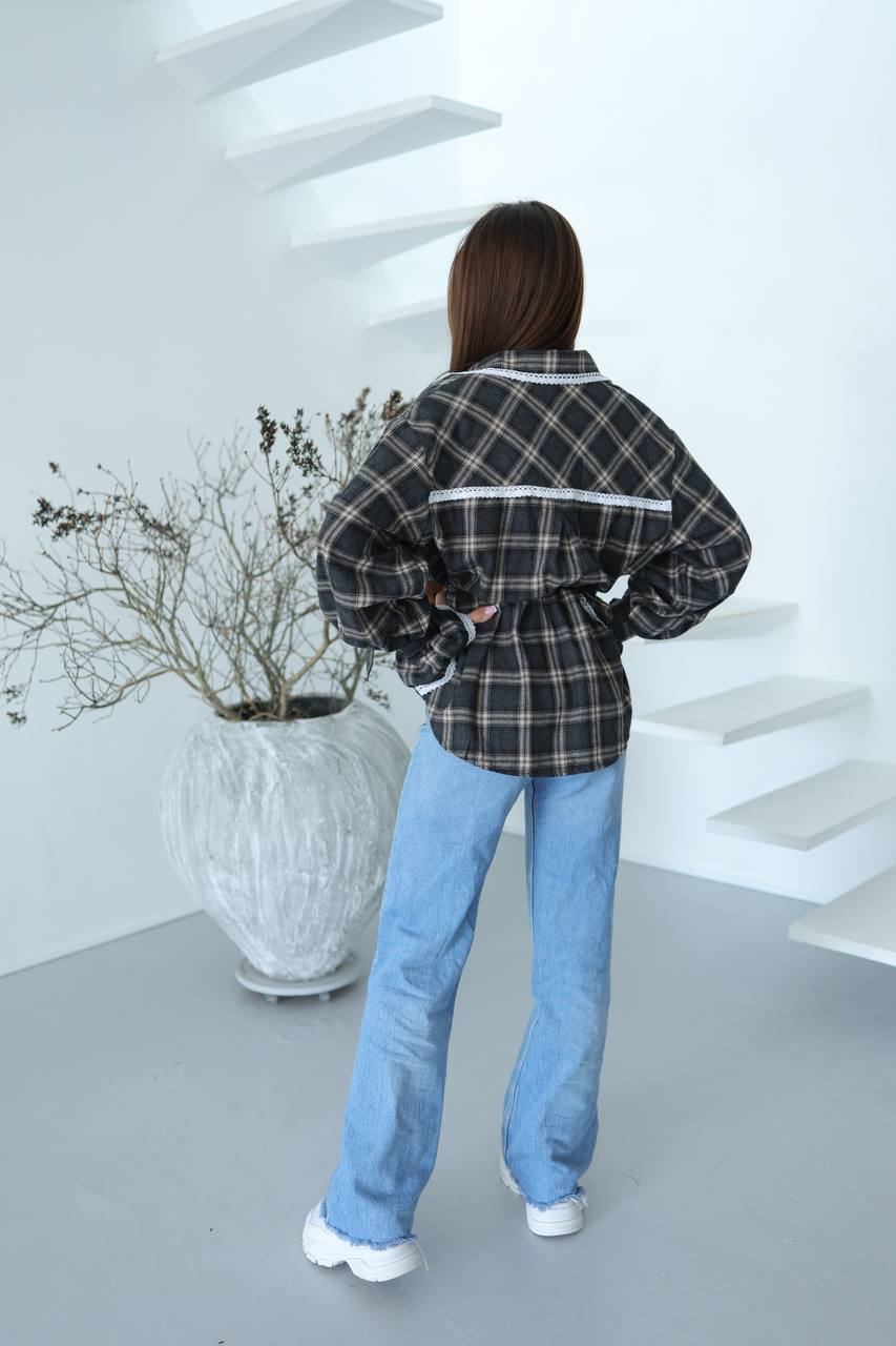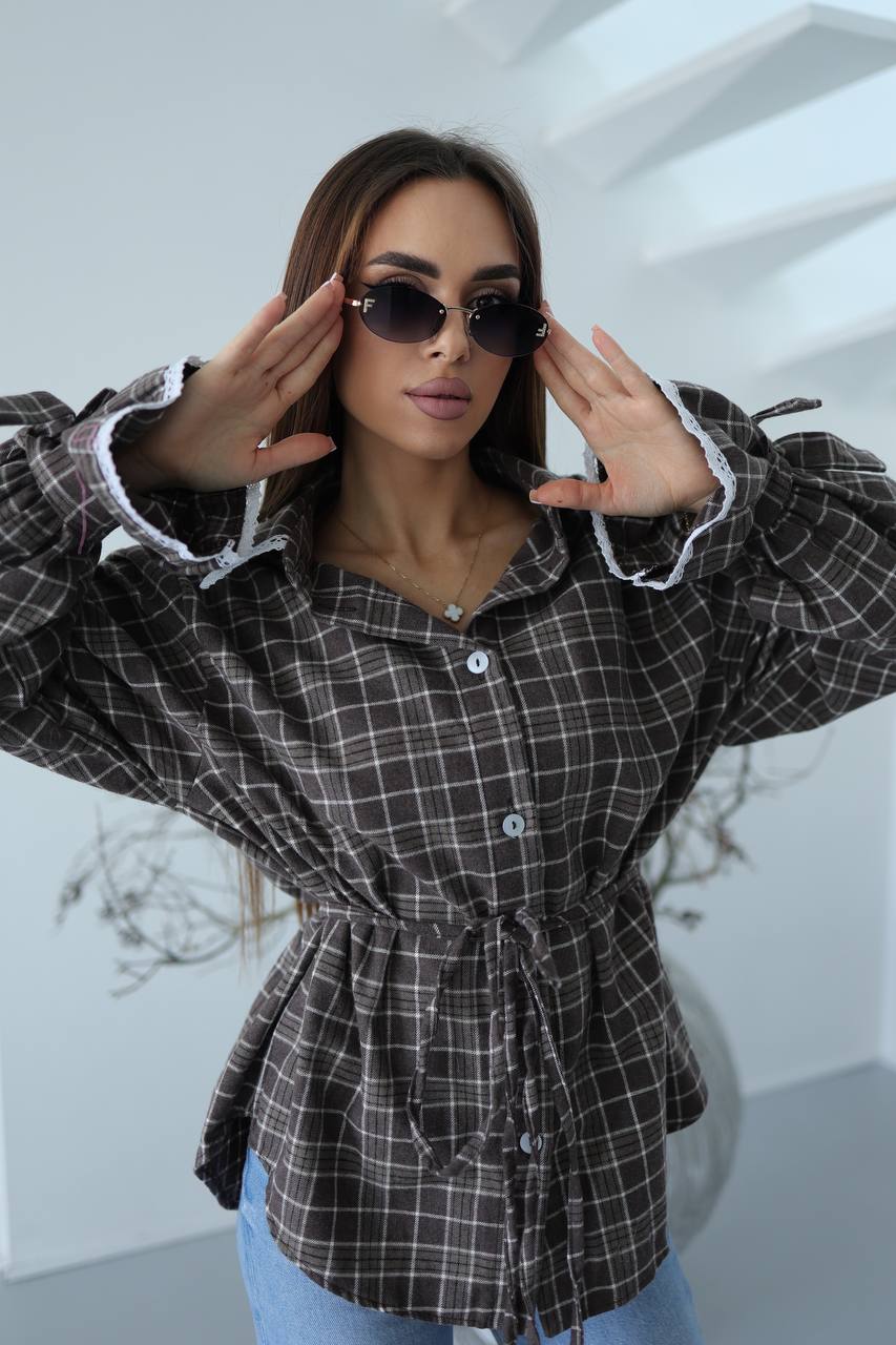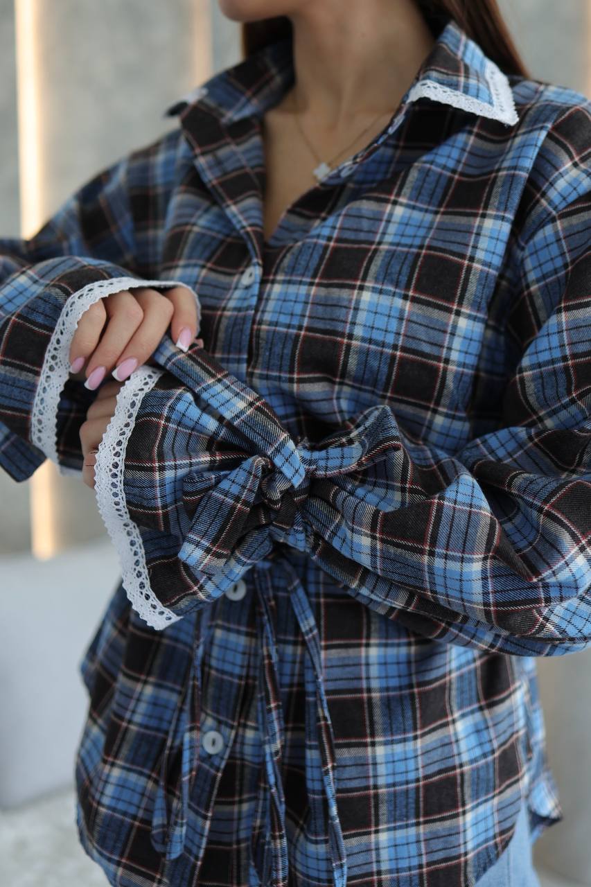 Стильна та зручна сорочка в клітинку у дуеті з мереживом у трендових кольорах,незамінна річ жіночого гардеробу, вона ідеально підійде для прогулянок та повсякденних образів,сорочка відмінної якості та пошиття.